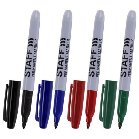 4 цвета в наборе: черный, красный, зеленый, синий. Круглая форма корпуса из пластика, диаметр которого 12 мм. Толщина линии письма - 2-4 мм в зависимости от угла наклона. Особая нестираемая основа перманентного маркера обеспечивает такие качества, как стойкость к воздействию воды, ультрафиолета, низких и высоких температур. Благодаря спиртовой основе чернила быстро сохнут и не смазываются. Износостойкий фетровый наконечник устойчив к повреждениям и обеспечивает экономный расход чернил. Изделие не перезаправляется. Плотно закрывается колпачком, что предотвращает высыхание наконечника и чернил. Цвет колпачка с клипом соответствует цвету чернил.