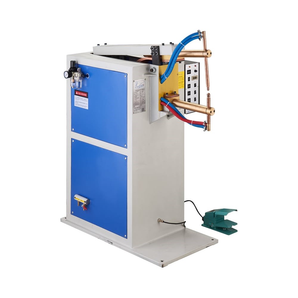 Стационарная машина предназначена для двухсторонней контактной точечной сварки. Модель снабжена пневматическим приводом с радиальным ходом верхнего плеча, выносным блоком управления сварочными параметрами. В машине установлен трансформатор переменного тока. Электрододержатели и электроды являются водоохлаждаемыми. Прочная конструкция корпуса машины, использование комплектующих известных мировых европейских и японских производителей, обеспечивают надежную работу оборудования, точность настройки, стабильное качество сварки, высокие эксплуатационные характеристики.