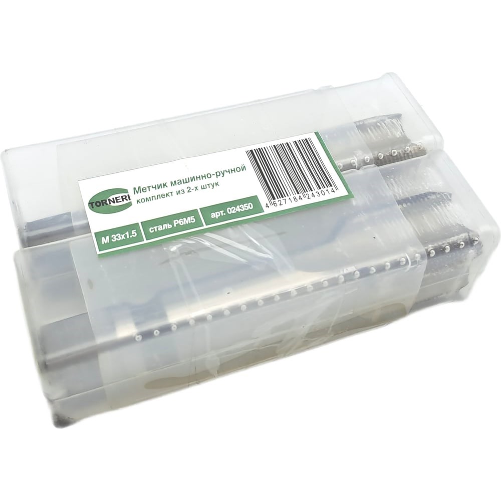 Машинно-ручной метчик TORNERI М33х1.5 комплект из 2-х штук Р6М5 024350 изготавливают из более износостойких сталей или сплавов. В отличие от ручных, машинные метчики используются для изготовления резьбы за один проход. На конце хвостовика такого инструмента находится квадрат и специальная проточка, что позволяет фиксировать инструмент и в воротке при выполнении ручных работ, и в станке при обработке машинным способом. Изготовлено из стали Р6М5 Метчик размерности М33 Шаг резьбы 1,5 Изготовлен в соответствии с ГОСТ 3266-81