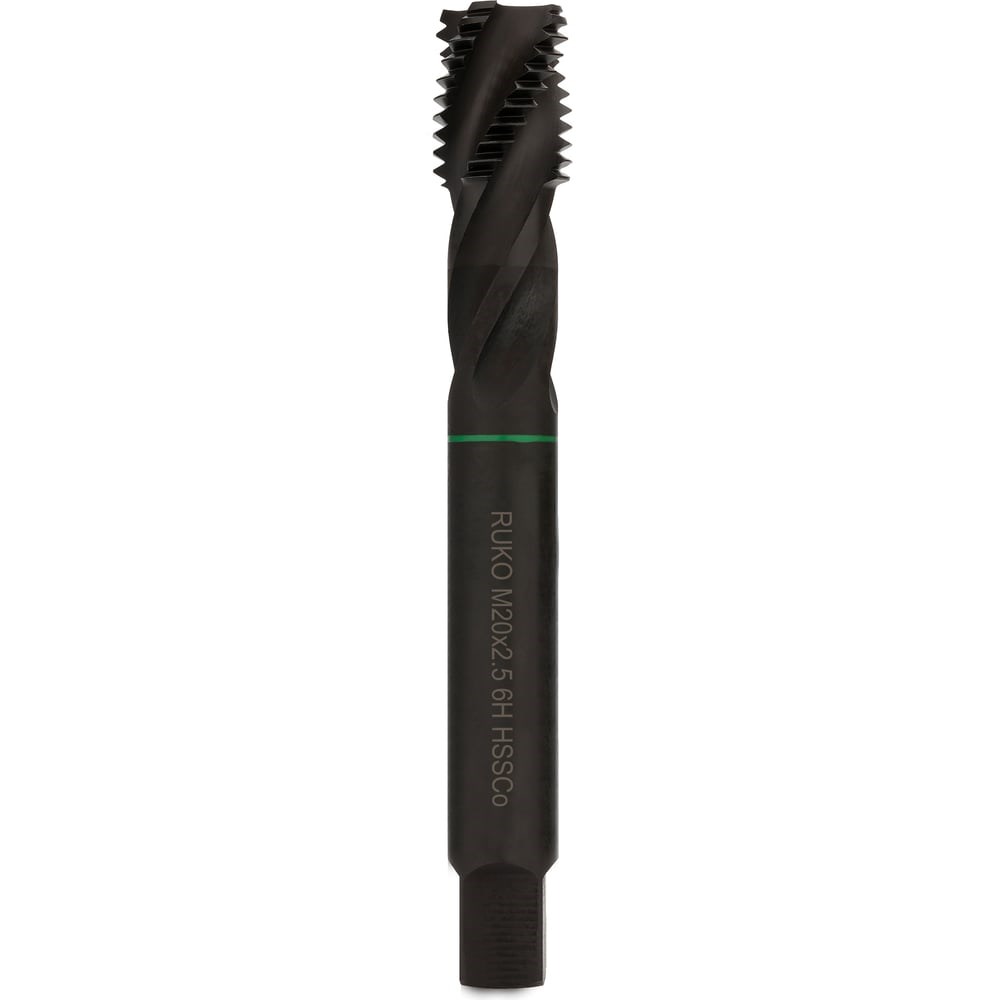 Машинный метчик Ruko М 20 Шаг 2.5 мм HSSE-VAP 233200VA предназначен для создания метрической резьбы, с углом профиля 60 градусов в различных материалах. Резьба нарезается за один этап, машинным или ручным способом. Винтовые канавки расположены под углом 35°, что обеспечивает оптимальное стружкоудаление. Изготовлен из легированной быстрорежущей стали HSSE (Кобальт 5%), которая гарантирует прочность и износостойкость. Подходит для обработки заготовок, выполненных из легированной и нержавеющей стали, чугуна, алюминия, меди, бронзы, цинка, с пределом прочности до 1000MPa. Покрытие VAP (вапаризирование) снижает образование холодных наплавов и улучшает адгезию смазочных материалов на поверхности инструмента. Отвод стружки происходит по спирали в направлении хвостовика. Метчик соответствует стандарту по DIN376, для машинных метчиков с проходным хвостовиком. Форма захода для глухого отверстия, C/2,5P.
