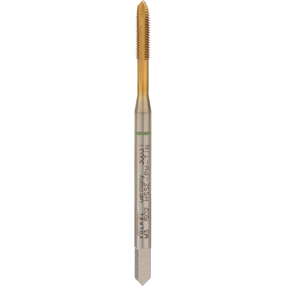 Машинный метчик VOELKEL М 3, шаг 0,5, HSSE-PM TiN DIN371 V30031предназначен для создания внутренней резьбы в различных материалах. Изготовлен из высококачественной быстрорежущей порошковой стали HSSE-PM (S590) с твердостью 65-67 HRC, что гарантирует прочность и износостойкость.Метод порошковой металлургии заключается в переработке металлической пудры высшей чистоты в гомогенные и свободные от сегрегации быстрорежущие стали с превосходными изотропными свойствами при помощи диффузионного процесса, происходящего при повышенном давлении и температуре. В состав стали входит: Co 8.4% (Кобальт), W 6.3% (Вольфрам), Mo 5% (Молибден).Покрытие TiN (нитрид титана) cнижает энергоемкость, повышает надежность инструмента.Инструмент подходит для обработки заготовок, выполненных из легированной или нержавеющей стали, чугуна, алюминия, меди, бронзы, цинка, с пределом прочности до 1000MPa. Резьба нарезается за один этап, машинным или ручным способом.