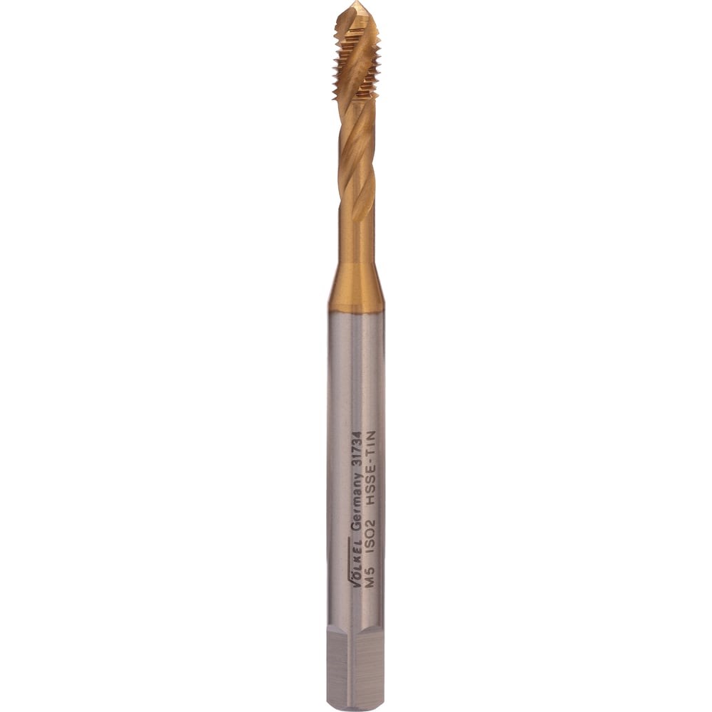 Машинный метчик VOELKEL с винтовой канавкой М5,0 шаг 0,8 мм HSSE-TiN DIN371 V31734 предназначен для создания внутренней резьбы в различных материалах. Изготовлен из высококачественной быстрорежущей стали HSSE, которая гарантирует прочность и износостойкость. Покрытие TiN (нитрид титана) снижает энергоемкость, повышает надежность инструмента. Форма заборной части C (2-3 нитки) - для глухих отверстий. Высокие антифрикционные свойства и устойчивость к износу являются результатом пониженной шероховатости поверхности и повышенной твердости. Подходит для обработки заготовок, выполненных из легированной или нержавеющей стали, чугуна, алюминия, меди, бронзы, цинка, с пределом прочности до 900MPa. Резьба нарезается за один этап, машинным или ручным способом.