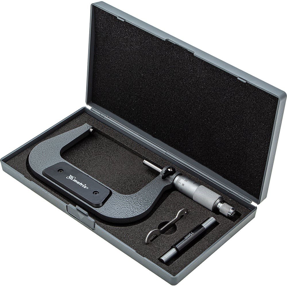 Механический микрометр MATRIX 317005 служит для выполнения особо точных измерений. Корпус выполнен в форме скобы и изготовлен из высокопрочной инструментальной стали, что определяет долговечность и надежность данного инструмента.