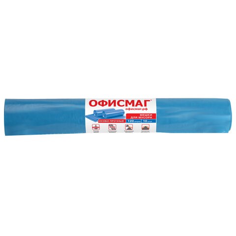 Мешки для мусора 120 л синие в рулоне 10 шт. особо прочные, ПВД 40 мкм, 70х110 см, ОФИСМАГ, 602929
