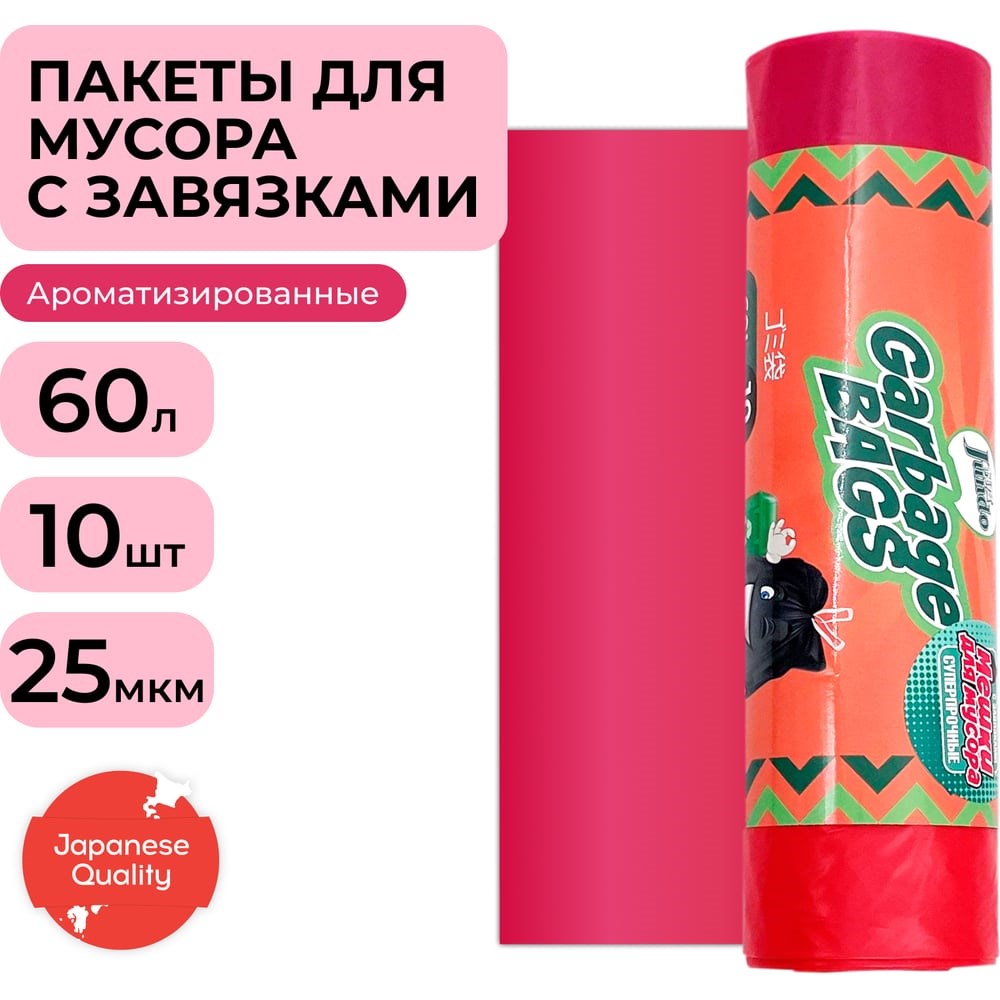 Мешки для мусора с завязками Strong bag красные, 60 литров, 10 шт Jundo 4903720021408 предназначены для хранения бытового мусора. Ими удобно пользоваться дома, на природе и на даче. Пакеты надёжно фиксируются на ведре, предотвращая сползание мешка и загрязнение корзины. Изготовлены из полиэтилена высокой прочности. Стенки пакетов способны выдержать механические повреждения, проколы, протекание жидкостей. Материал пригоден для переработки.
