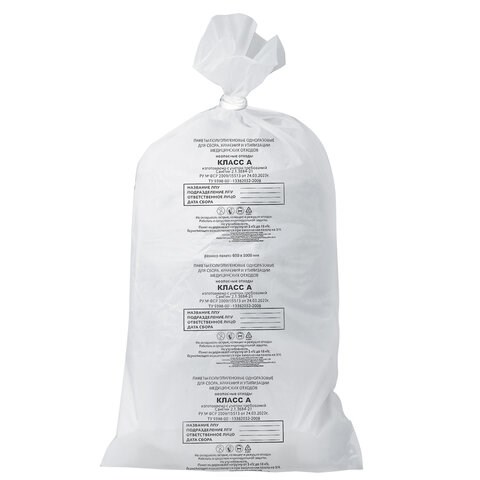 Мешки для мусора медицинские КОМПЛЕКТ 20 шт., класс А (белые), 100 л, 60х100 см, 14 мкм