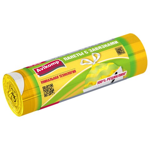Мешки изготовлены из полиэтилена среднего давления, который сочетает ПНД и ПВД. Наличие у пакетов завязок увеличивают полезную площадь изделия до 20% и препятствуют распространению неприятного запаха. Завязки имеют высокую плотность и не деформируются при стягивании.