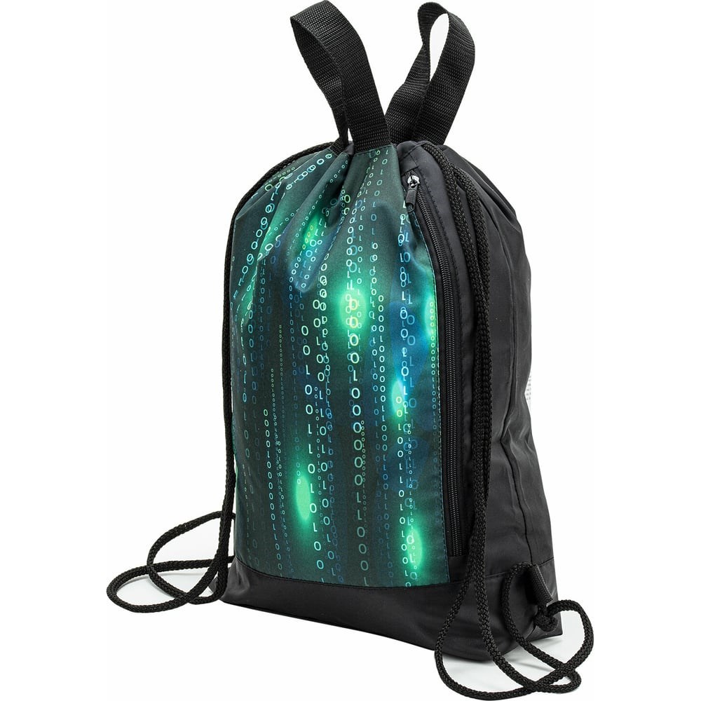 Мешок для обуви с ручками ЮНЛАНДИЯ Matrix боковой карман на молнии, 46x36 см 271068 – необходимый аксессуар в школе. Подходит как для обуви, так и для физкультурной формы и сменной одежды для факультативных занятий. Затягивается двумя шнурками. Можно носить на плечах за спиной. Мешок изготовлен из плотного полиэстера с водоотталкивающей пропиткой. Яркая и четкая печать дизайна на мешке достигнута за счет использования высококачественной ткани с высокой плотностью. Мешок размером 46х36 см имеет одно вместительное отделение и большой боковой карман на молнии. Наличие двух ручек позволяет переносить мешок в руках и подвешивать на крючок в школе.