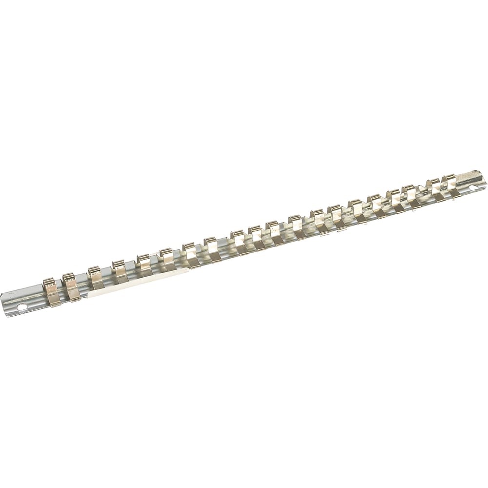 Планка для головок металлическая на 20 посадочных мест Дело Техники 976020 применяется для безопасного хранения торцевых головок. Изделие также упрощает транспортировку головок. Разъемы рассчитаны на тип 1/4". Планка имеет изогнутую основу, которая обеспечивает высокую жесткость конструкции. По краям пластины расположены два отверстия для крепления.