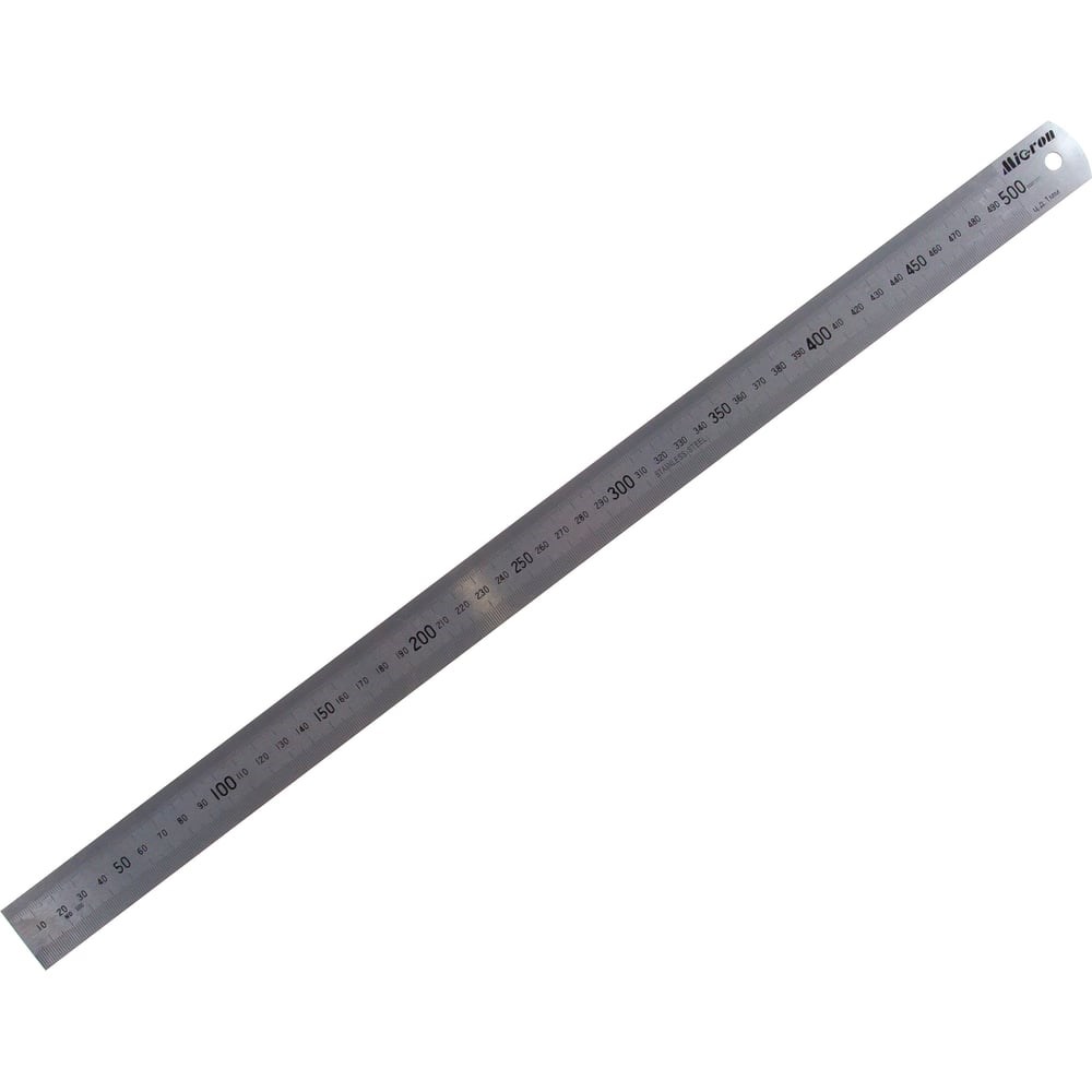 Измерительная металлическая линейка 500х30 Micron МИК 34312 - гибкий инструмент, который позволяет определить размеры плоской детали, а также изделий с небольшим изгибом. Нержавеющая сталь не подвержена коррозии, что расширяет сферу применения инструмента и увеличивает срок службы.
