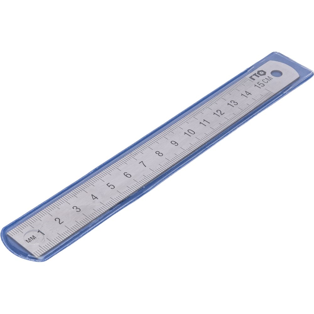 Металлическая линейка ГТО 150 мм SR15001 производится по ГОСТ 427-75. Инструмент представляет собой узкую металлическую ленту, на которую нанесены две штрихованные шкалы с ценой деления 1 мм. Сантиметровые штрихи шкалы имеют числовое обозначение, которое указывает на расстояние до этого штриха (в сантиметрах) от начала шкалы.
