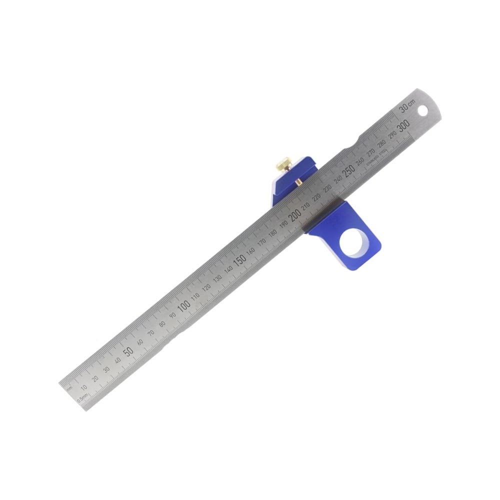 Металлическая линейка с держателем РеСоурс 300 мм RST.003.300 используется для удобной фиксации линейки при проведении измерений и осуществлении разметки. Позволяет измерять длину и чертить линии под углом 90, 45 и 135 градусов. Держатель изготовлен из алюминиевого сплава с нанесение прочного износостойкого покрытия, линейка - из нержавеющей стали, шкала вытравлена.