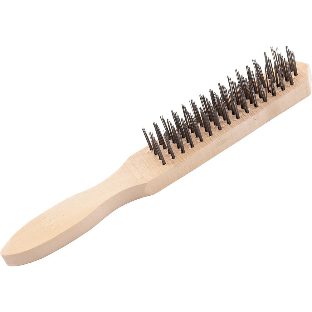Металлическая щетка DolleX 4-х-рядная, с деревянной ручкой BRW-04 подойдет для эффективной очистки металлических поверхностей от краски, ржавчины и других прочных загрязнений. Металлическая щетина из четырех рядов стальной проволоки обеспечит удобную работу и доступ в узкие местае. Размер щетки: 270 х 30 х 40 мм Размер щетины: 120 х 20 х 24 мм Размер ручки: 150 х 30 х 17 мм
