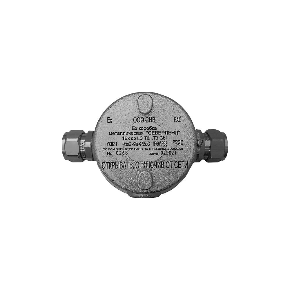 Взрывозащищенная EX-коробка Магнито-контакт металлическая "СЕВЕРЛЕНД Проходная" с пластиковой клеммной колодкой, предназначена для соединения (разветвления) сигнальных кабелей, например в шлейфах сигнализации, линиях связи и телекоммуникаций, цепях в системах управления и автоматики, а также подключения в шлейфы оконечных устройств, например датчиков сигнализации, абонентских устройств систем связи и т. п.Ех коробка металлическая «СЕВЕРЛЕНД» выполнена из алюминиевого сплава АК5М2 ГОСТ 1583-93, в части взрывозащиты соответствует ТР ТС 012/2011 «О безопасности оборудования для работы во взрывоопасных средах», ГОСТ 31610.0-2014 (IEC 60079-0:2011) «Взрывоопасные среды. Часть 0. Оборудование. Общие требования», ГОСТ IEC 60079-1-2011 «Взрывоопасные среды. Часть 1. Оборудование с видом взрывозащиты «взрывонепроницаемые оболочки «d».Область применения: предприятия нефтегазовой промышленности, энергетика (АЭС, ТЭЦ, ГЭС, ГРЭС, котельное хозяйство), нефтеперерабатывающие заводы НПЗ, химические заводы, морской и речной транспорт, добыча и транспортировка газа, рудодобывающая промышленность, водоснабжение, канализация, черная и цветная металлургия, целлюлозно-бумажная промышленность, сельское хозяйство, утилизация отходов, пищевая промышленность, обогатительные фабрики.