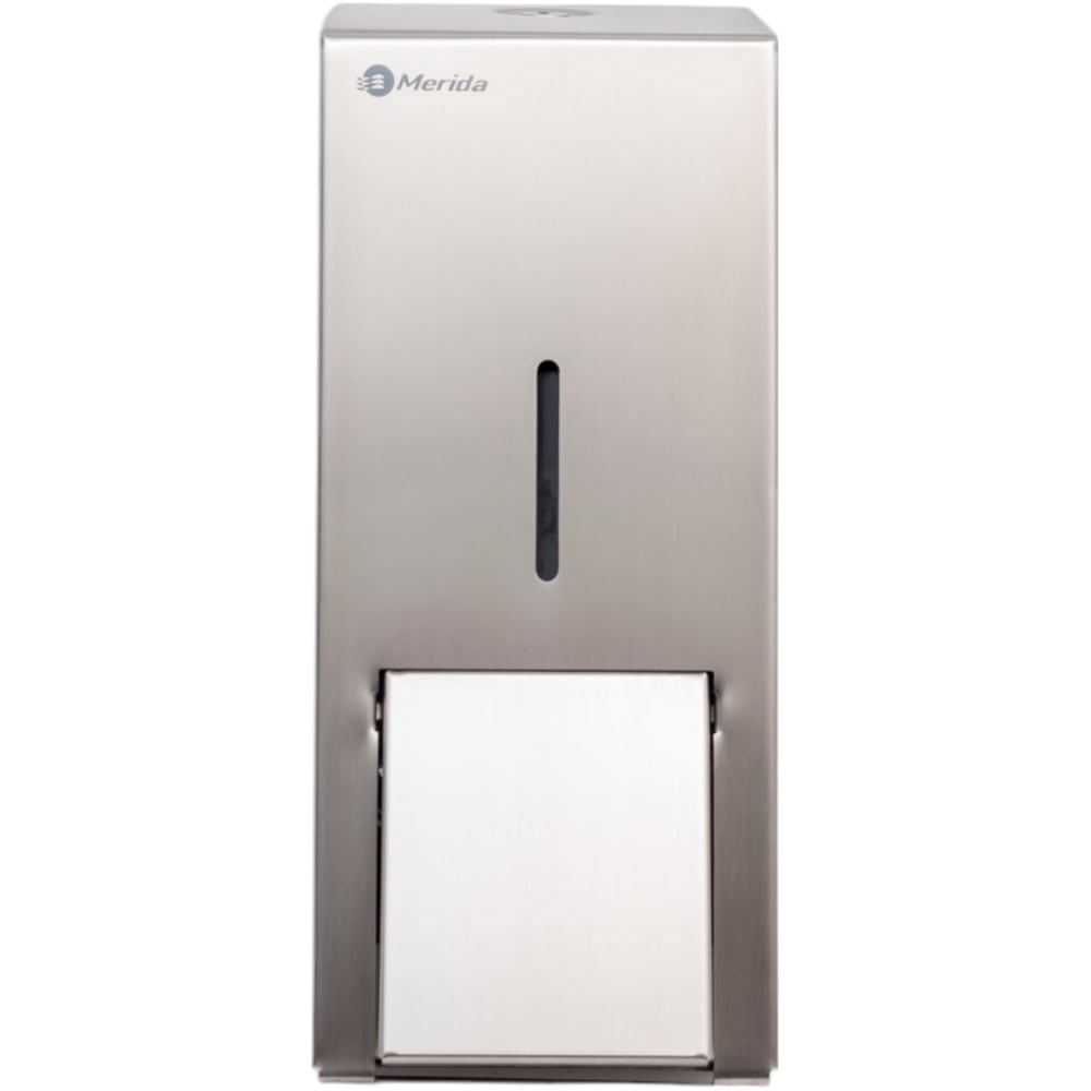 Наливной дозатор жидкого мыла металлический "MERIDA STELLA R" MAXI 1000 мл Изготовлен из матовой нержавеющей стали AISI 304 толщиной 1 мм. Стильный и надежный дозатор мыла, который украсит любую туалетную комнату. Надежность конструкции обеспечит длительный срок службы дозатора. Снабжен прочным стальным барабанным замком заподлицо с поверхностью устройства, сварные соединения боковых стенок зашлифованы, образуя гладкую поверхность. Имеет удобное окошко для контроля наличия расходных материалов.