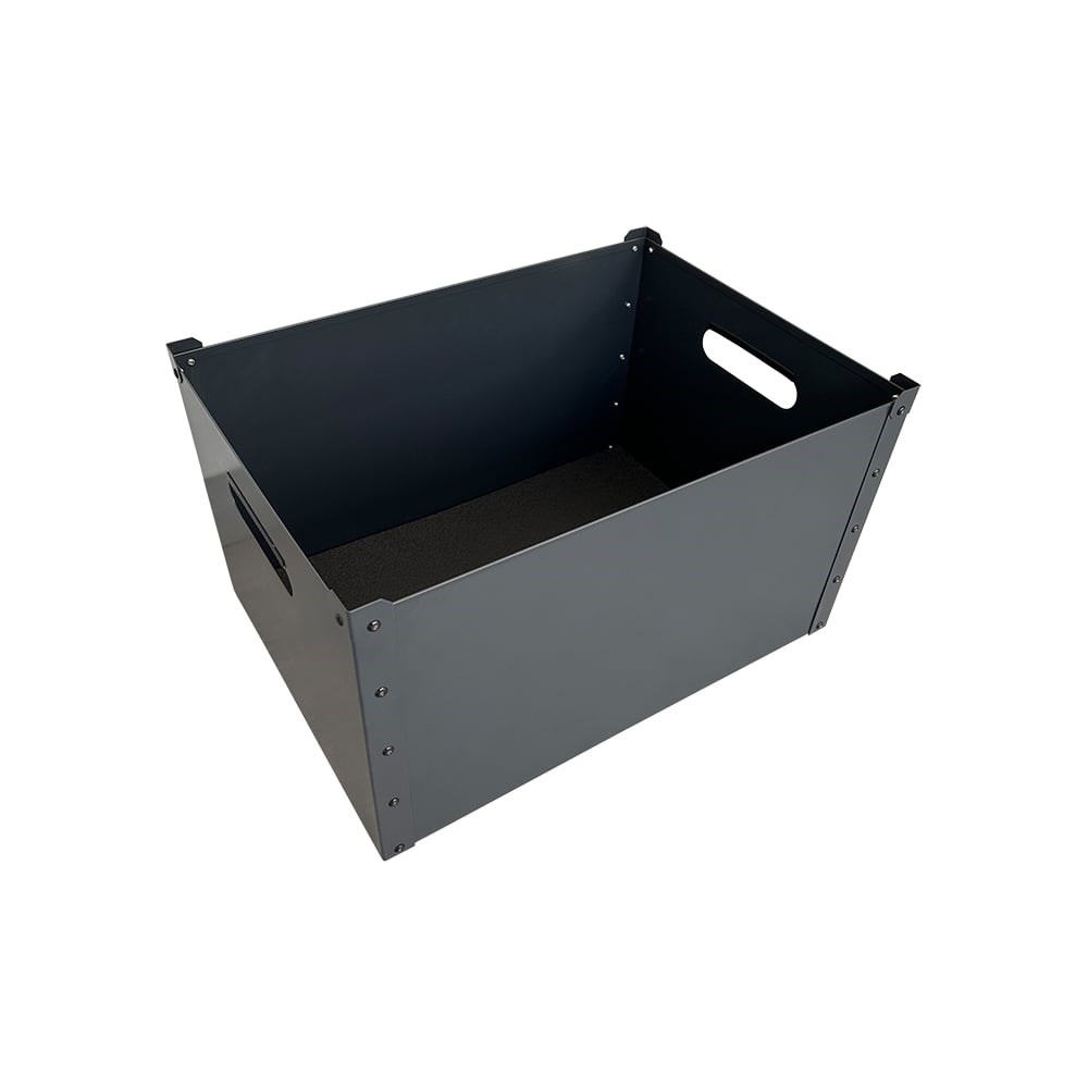 За минималистичным дизайном контейнера кроется многофункциональность и прагматичность, что делает его нужным в гараже и складском помещении. Данный контейнер, в отличии от пластиковых аналогов не просто хорошо подходит для организации пространства, он был создан , в том числе, для хранения горючих веществ, ветоши, и прочих деталей склонных к самовоспламенению или требующих повышенной безопасности. Изготовленный из листового металла толщиной 0,7мм, покрытый краской для защиты от коррозии контейнер не заржавеет, что обеспечит долгий срок службы и сохранность не только его, но и содержимого. Ящик для хранения можно смело назвать органайзером благодаря его форме: удобные, не выступающие за габариты ящика ручки, ровные прямые линии, фиксирующие уголки – все это позволяет оптимально комбинировать положения нескольких ящиков. Ящики отлично примыкают друг к другу гранями при размещении на одной плоскости, например на полках стеллажей и шкафов, где контейнеры будут актуальны для хранения особо ценных документов и прочих важных бумаг. Кроме того, конструкция ящиков позволяет составлять их в колонну до 6 штук. На дне контейнера проложен пенолоновый коврик, что оберегает хранящиеся предметы от скольжения и нежелательного повреждения. Дополнительно можно укомплектовать ящик поролоновым вкладышем необходимого размера и конфигурации для более безопасного хранения и транспортировки вещей.