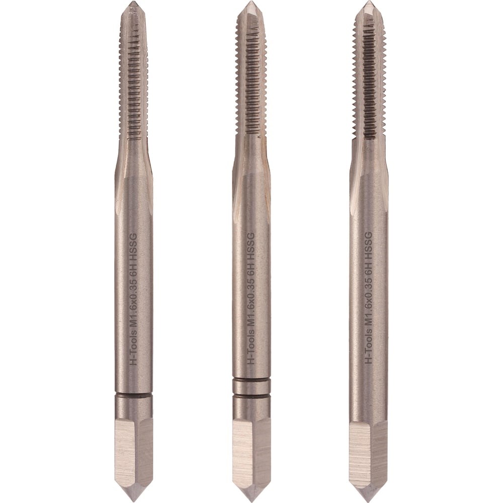 Набор метчиков из 3-х шт. H-Tools предназначен для создания внутренней метрической резьбы с углом профиля 60 градусов в различных материалах. Изготовлен из высококачественной быстрорежущей стали HSS-G, которая гарантирует прочность и износостойкость. Подходит для обработки заготовок, выполненных из легированной стали, чугуна, алюминия, меди, бронзы, цинка, с пределом прочности до 800MPa. Формирование резьбы происходит в 3 этапа: сначала черновым метчиком №1 (6-8 ниток на заход), затем чистовым №2 (4-5 ниток на заход) и финишным (2-3 нитки на заход). Благодаря этому, снижается усилие, прилагаемое к каждому метчику, а получаемая резьба более точная и чистая.