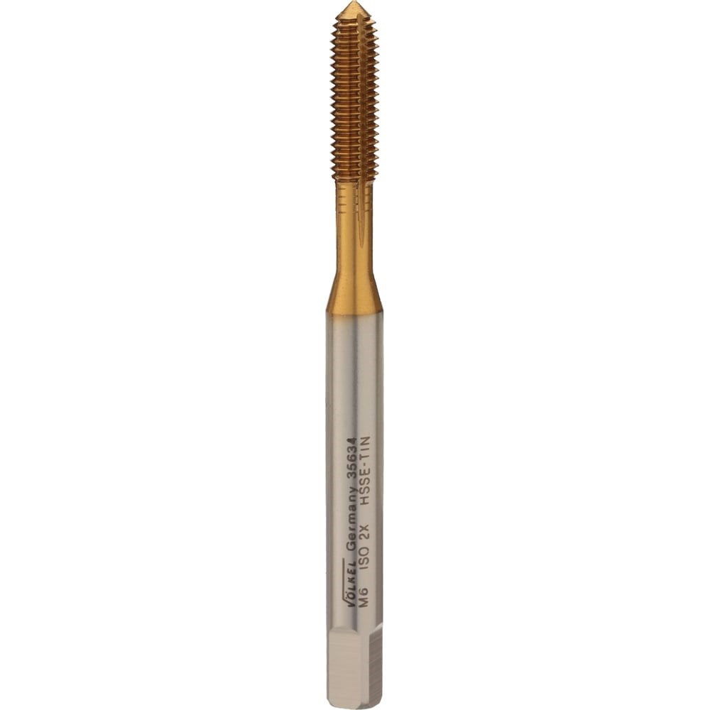Метчик раскатник VOELKEL М6 шаг 1,0 мм HSSE-TiN DIN371 V35634 предназначен для создания внутренней резьбы в различных материалах. Метчик отличается от других тем, что в процессе изготовления резьбы происходит не резка материала, а его уплотнение тем самым не повреждается структура волокна. Не образуется стружка, а значит не требуется создание условий для ее отведения.Полученная резьба - более прочная, т.к. материал в области витков уплотняется, а не вырезается. Раскатник изготовлен из высококачественной быстрорежущей стали HSSE, которая гарантирует прочность и износостойкость.Покрытие TiN (нитрид титана) снижает энергоемкость, повышает надежность инструмента.Подходит для обработки заготовок, выполненных из легированной или нержавеющей стали, чугуна, алюминия, меди, бронзы, цинка, с пределом прочности до 900MPa. Наличие масляных канавок дает возможность использовать раскатник для глубины резьбы более 1,5 x D для оптимизации смазки.Допуск: ISO2X/6HX