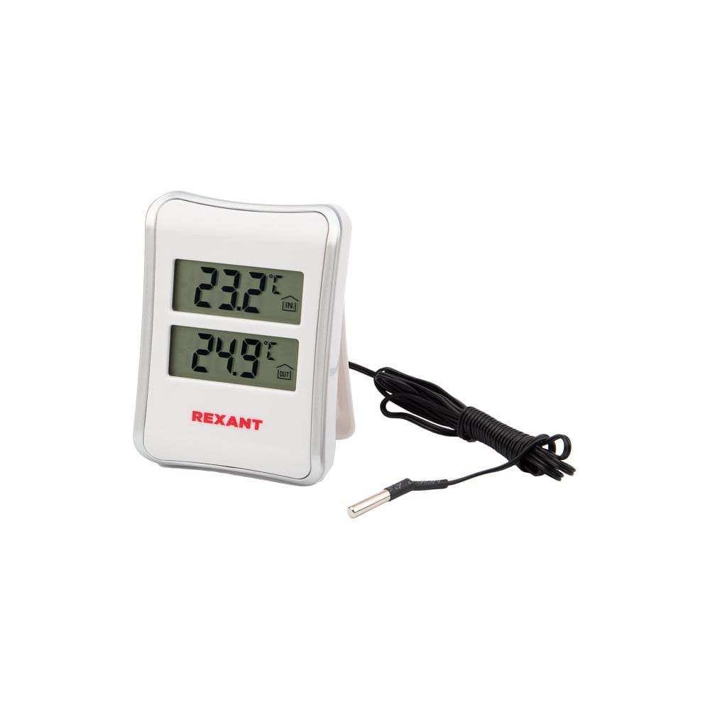 Комнатно-уличная метеостанция REXANT предназначена для измерения показаний температуры внутри и снаружи помещений. Оптимально подходит для использования в домашних условиях, в офисе, а также в учебных и медицинских учреждениях. Станция экономична и проста в эксплуатации, имеет небольшие размеры, простой дизайн и большой дисплей. Отличается точными показаниями, а также простым и удобным управлением.Дополнительные характеристики:Отображение внутренней и наружной температурыДиапазон температур: от 0 до+ 50CТемпература наружного воздуха: -40 ℃ +70 ℃