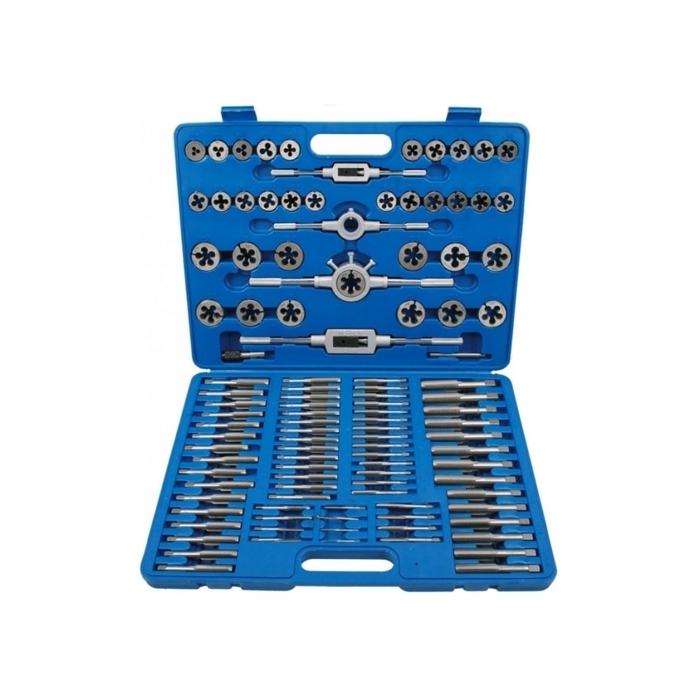 Набор метчиков и плашек VERTUL метрический 110 предметов VR41004 предназначен для нарезания метрической резьбы.  В набор входит широкий спектр метчиков и плашек для нарезания резьбы разных размеров. Инструмент выполнен из качественной и износостойкой стали. Поставляется в удобном кейсе для рационального хранения и транспортировки.