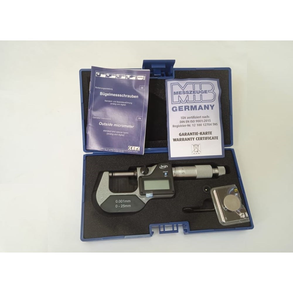 Цифровой микрометр предназначен для точного измерения линейных размеров различных деталей и объектовс точностью от 1 мкм. Он используется в машиностроении, металлообработке, автомобильной промышленности и других областях, где требуется высокая точность измерений.Особенности цифрового микрометра MIB 02029080:Микрометр цифровой с отсчетом по цифровому отсчетному устройству.Степень пыле- влагозащищенности IP65Диапазон измерений 0-25 мм, шаг 0,001 мм, точность 0.005 мм.Большой легко читаемый цифровой дисплей.Кнопка SET(функции вкл/выкл, установки на «0»).Функция автовыключения.Измерительные поверхности с твердосплавными наконечниками.Винт фиксации подвижного наконечника.Трещотка для регулировки усилия.Питание от батарейки CR2032.В комплект входит насадка − стальной шарик для облегчения и более точных измерений трубчатых, цилиндрических изделий.