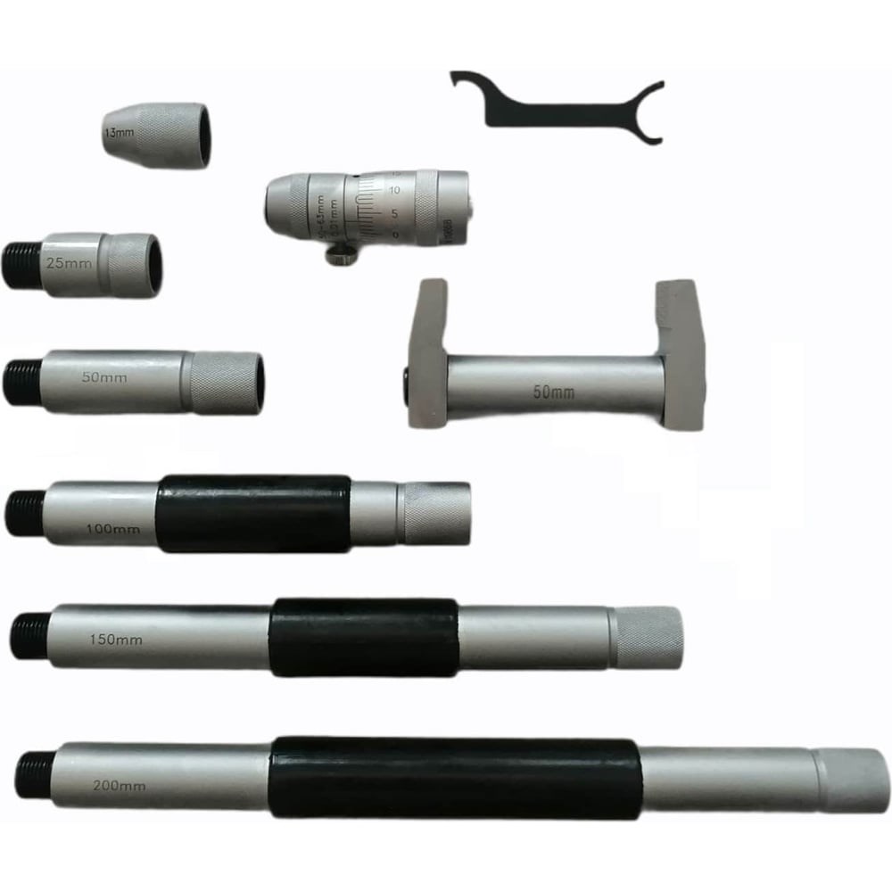 Микрометрический нутромер ГТО НМ 50-600, 0,01мм LM5060001 с ценой деления 0,01мм предназначен для измерения внутренних размеров абсолютным методом, который состоит в определении точного значения расстояния между заданными точками путем помещения прибора внутрь. Представляет собой винт с жестко закрепленным барабаном и стеблем с измерительным наконечником.
