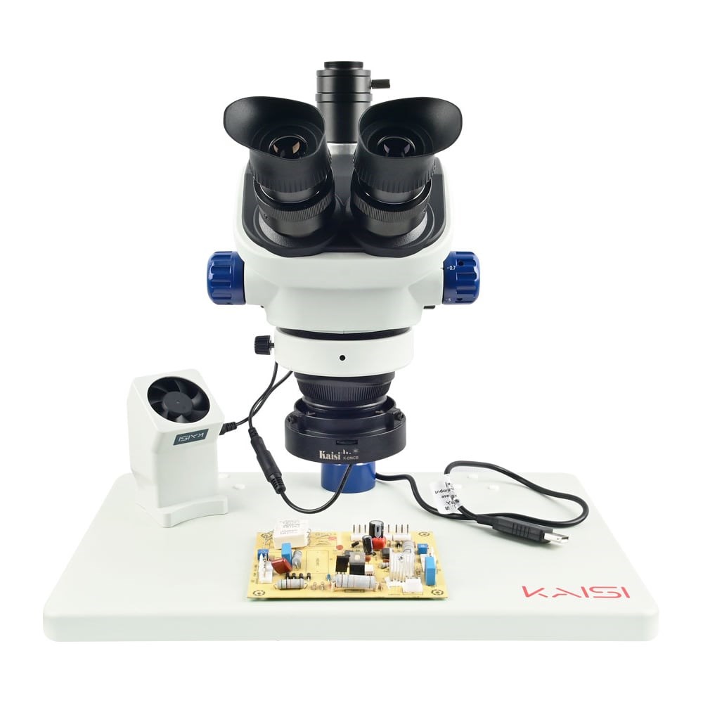 Микроскоп Kaisi TX-350E тринокулярный + подсветка, данная модель микроскопа идеальное решение для работы с печатными платами. Благодаря встроенному вытяжному вентилятору, можно производить пайку под микроскопом, не боясь испортить окуляры.Бинокулярный микроскоп - это прибор с двумя окулярами, позволяющий рассматривать объекты под многократным увеличением сразу обоими глазами. Визуализация на оба окуляра позволяет получить соответствующий стереоэффект, получаемый с одного объектива. В результате картинка получается не плоская, как на монокулярных приборах, а объемная.Тринокулярный микроскоп используются, как бинокулярные, а третий окуляр необходим для того, чтобы присоединять к нему видеокамеру, которая позволяет вести съемку.Диапазон увеличения от 6.5х до 65х позволяет увидеть объекты в различных масштабах с совершенной четкостью.Поворот корпуса на 360 градусов обеспечивает комфортную работу с микроскопом. Это даёт возможность быстрого изменения направления наблюдения, что позволяет исследователю максимально удобно располагаться и не заботиться о ненужных перестановках при работе с прибором.Данная модель микроскопа наличие подсветки, дымоуловителя и USB-разъема. Подсветка обеспечивает равномерное освещение и позволяет получить яркое и четкое изображение. Дымоуловитель защищает пользователей от попадания вредных паров и оседающей пыли. USB-разъем позволяет подключить камеру и фиксировать изображение для дальнейшего анализа и изучения.