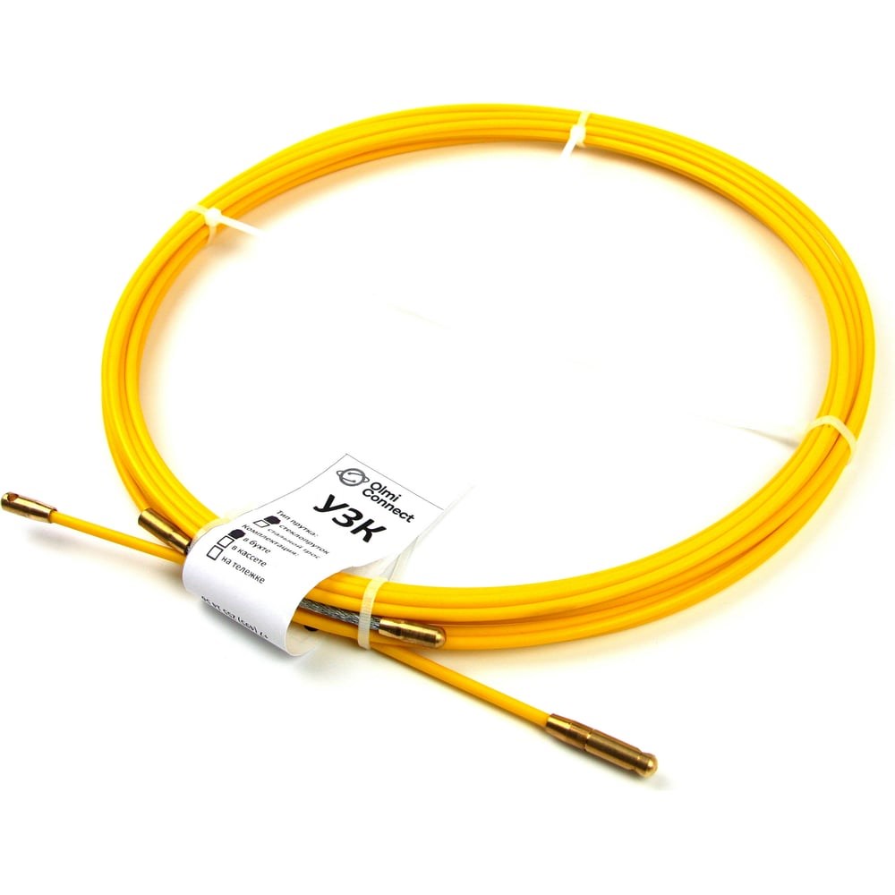 Протяжка для кабеля мини OlmiOn УЗК d=4,5 мм L=5 м в бухте, желтый СП-Б-4,5/5 (устройство для закладки кабеля) в бухте - это самое простое, бюджетное, но при этом качественное и надёжное решение проблемы протяжки кабеля в металлорукава, трубы, короба и каналы при проведении монтажных работ по прокладке проводки для установки видеонаблюдения, систем контроля доступа, домофонов, охранной сигнализации, а также линий связи (интернет, телефон) в офисах, жилых и промышленных помещениях. Устройство представляет собой стеклопластиковый пруток, который снаружи покрыт специальной защитной оболочкой, выполненной из износостойкого полиэтилена высокой плотности. С одной стороны УЗК находится наконечник из латуни, на который в каждом конкретном случае, в зависимости от условий протяжки, можно накрутить жёсткую или гибкую насадку (последняя наиболее удобна для использования в каналах уже наполненных большим количеством кабелей или с высоким числом изгибов), а с другой стороны жёстко закреплён наконечник (также из латуни) для фиксации кабеля, который необходимо протянуть. В комплекте с мини УЗК жёсткая и гибкая насадки. Минимальный радиус изгиба протяжки: 25 мм-30 мм. Общий диаметр прутка: 4,5 мм. Поставляются в двух цветовых вариантах на выбор: Желтые, Красные