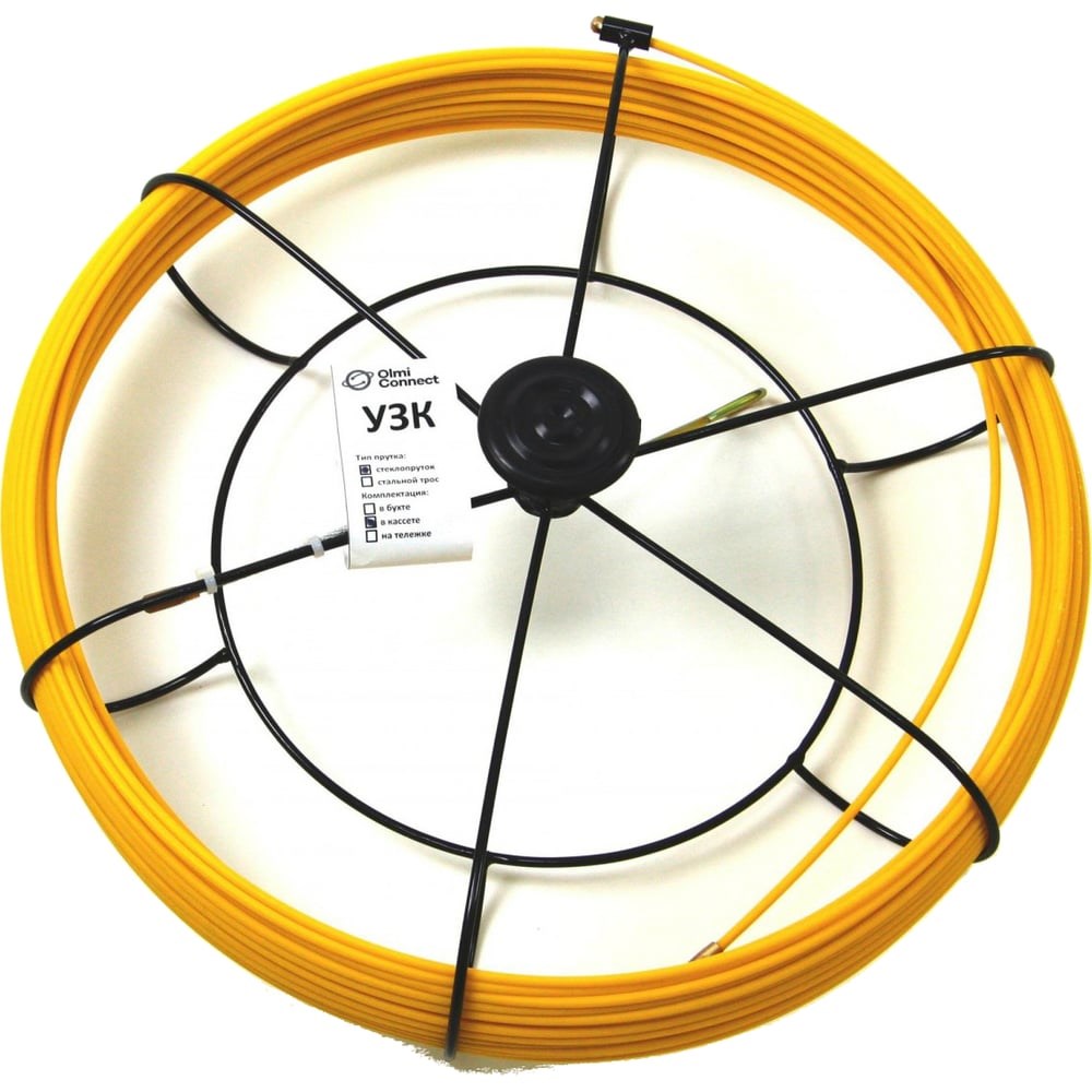 Протяжка для кабеля мини OlmiOn УЗК d=4,5 мм L=100 м в кассете №2, желтый СП-К2-4,5/100 (устройство для закладки кабеля) в бухте - это самое простое, бюджетное, но при этом качественное и надёжное решение проблемы протяжки кабеля в металлорукава, трубы, короба и каналы при проведении монтажных работ по прокладке проводки для установки видеонаблюдения, систем контроля доступа, домофонов, охранной сигнализации, а также линий связи (интернет, телефон) в офисах, жилых и промышленных помещениях. Устройство представляет собой стеклопластиковый пруток, который снаружи покрыт специальной защитной оболочкой, выполненной из износостойкого полиэтилена высокой плотности. С одной стороны УЗК находится наконечник из латуни, на который в каждом конкретном случае, в зависимости от условий протяжки, можно накрутить жёсткую или гибкую насадку (последняя наиболее удобна для использования в каналах уже наполненных большим количеством кабелей или с высоким числом изгибов), а с другой стороны жёстко закреплён наконечник (также из латуни) для фиксации кабеля, который необходимо протянуть. В комплекте с мини УЗК жёсткая и гибкая насадки. Минимальный радиус изгиба протяжки: 25 мм-30 мм. Общий диаметр прутка: 4,5 мм. Поставляются в двух цветовых вариантах на выбор: Желтые, Красные