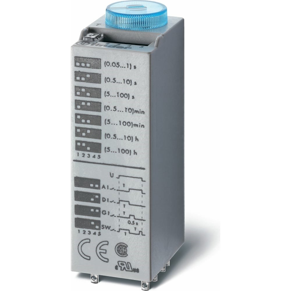 Дополнительные характеристики миниатюрного съемного реле времени Finder функц: Ai, Di, gi, sW, 2 CO конт. 10а, 850200240000: Номинальное напряжение катушки - 24 В. Семь временных шкал от 0.05 с до 100 ч. Питание AC/DC не поляризованное. Монтаж в розетки 94 серии. Функции: AI: Задержка включения, DI: Интервалы, SW: Симметричный повтор цикла (начальный импульс ВКЛ), GI: Импульсы с задержкой. Контактная группа - 2CO.
