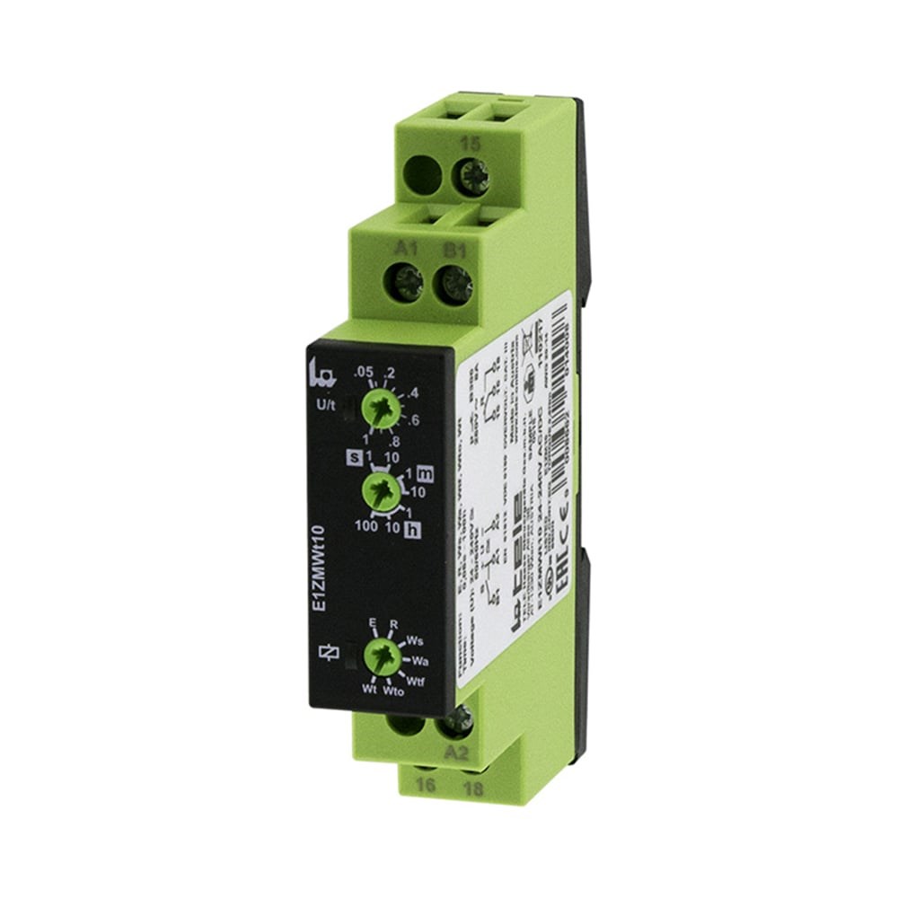 Многофункциональное реле времени TELE E1ZMWt10 24-240V AC/DC 110217 имеет 7 функций времени: Задержка включения (E). Задержка выключения с контактом управления (R). Формирование импульса по фронту управляющего сигнала (Ws). Формирование импульса по спаду управляющего сигнала (Wa). Контроль последовательности импульсов с управлением по фронту (Wtf). Контроль последовательности импульсов с управлением по фронту с состоянием ВКЛ. (Wto). Обнаружение импульсов (Wt).
