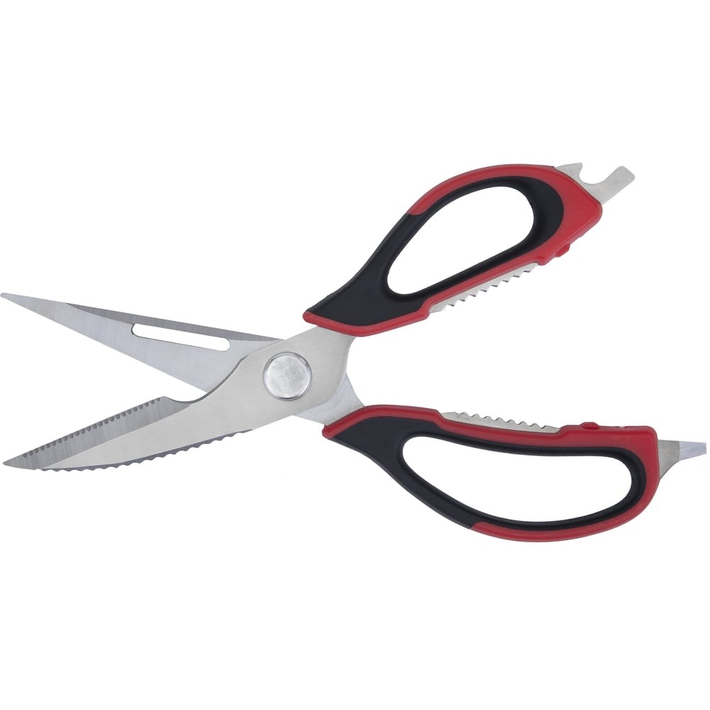 Кухонные ножницы RESTO многофункциональные, 9 в 1 95325 – это простой и удобный в применении аксессуар, необходимый на каждой кухне. Съёмные лезвия легко заточить. Ножницы просты в использовании и незаменимы для выполнения множества задач. Данная модель может выполнять различные функции и включает в себя: Нож для работы с рыбой Открывалка для банок Открывалка для бутылок Бытовые ножницы Орехокол Овощечистка Нож простой Специальный паз, для разрезания костей птицы Шлицевая отвёртка.