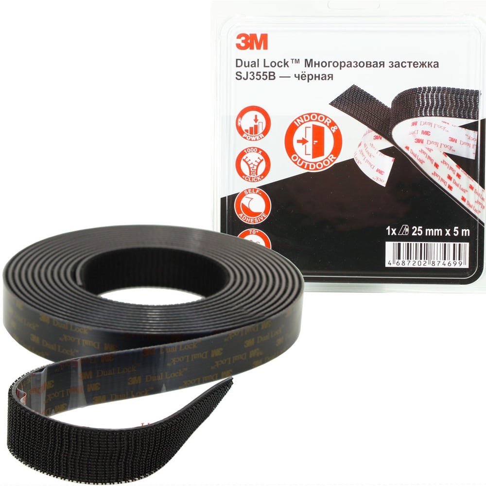 Застежки 3M Dual Lock представляют собой полоски пластика с выступающими пластиковыми грибками. При сжатии двух кусков застежки, головки грибков входят в зацепление с характерным щелчком. Для расстегивания достаточно потянуть застежки в разные стороны. Ресурс застежек превышает 1000 циклов закрыть-открыть. Самоклеящиеся застежки могут заменять обычные средства соединения, такие как заклепки, клипсы, саморезы и т.п. Отлично клеится к металлу (алюминий, нержавеющая сталь), стеклу и пластикам (акрил, поликарбонат, АБС), В пять раз прочнее обычных застёжек-липучек, Выдерживает до 1000 циклов открытия-закрытия, после чего теряет 50% прочности. Может использоваться в помещениях и на открытом воздухе. Самоклеящиеся застёжки 3М Dual Lock широко используются в самых разных применениях на транспорте, в электронике, приборостроении, для знаков и наружной рекламы и др. Dual Lock может заместить традиционные механические средства крепления в самых разных конструкциях.
