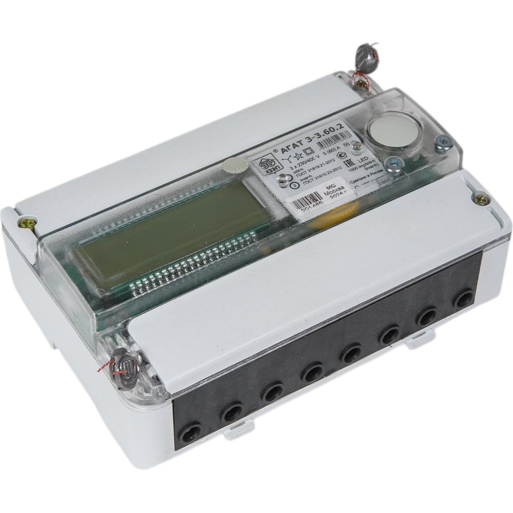 Трехфазные микропроцессорные счетчики типа АГАТ 3 в третьем исполнении корпуса предназначены для учета электроэнергии в мелкомоторном секторе, у бытового потребителя, а также для технического учета на малоемких предприятиях. Современный компактный корпус с креплением на DIN-рейку типа ТН-35 позволяет легко устанавливать счетчики практически в любые электротехнические шкафы. Счетчики АГАТ 3-3.60.2 позволяют вести многотарифный учет активной и реактивной энергии в одном или двух направлениях, копить и запоминать в памяти данные профилей нагрузки, а также измерять и отображать на ЖКИ некоторые параметры электросети пофазно: среднеквадратические токи и напряжения, активную/реактивную/полную мощности, частоту сети, коэффициент мощности трехфазной системы. Применение программного конфигуратора MConfig позволяет осуществлять считывание коммерческих данных и программирование счетчиков. Благодаря невысокой стоимости, простоты и надежности счетчики доступны для применения у бытовых потребителей, а цифровые интерфейсы связи и телеметрические выходы (ТМ) позволяют использовать их в составе всевозможных автоматизированных и интеллектуальных систем контроля и учета электроэнергии (АСКУЭ, ИСУЭ). Счетчики зарегистрированы в Федеральном информационном фонде по обеспечению единства измерений под номером 83910-21.