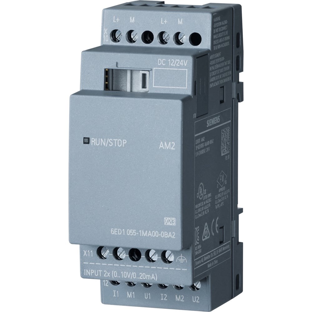 LOGO AM2 - Модуль расширения с напряжением питания 12/24 В, предназначенный для использования с контроллерами LOGO 8. Этот модуль обеспечивает 2 аналоговых входа с возможностью измерения сигналов в диапазоне 0-10 В или 0/4-20 мА. Широкие возможности ввода делают его универсальным для различных приложений, где требуется мониторинг аналоговых сигналов для эффективного управления и контроля.