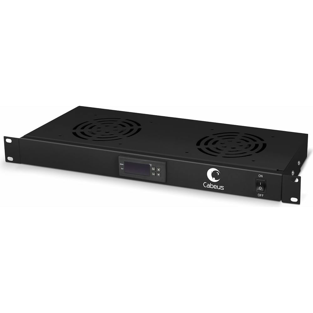 Вентиляторный модуль Cabeus, 2 вентилятора, с цифровым термодатчиком, JG02-BK отводит тепло из внутренней части 19" шкафа наружу, тем самым обеспечивая охлаждение для телекоммуникационного оборудования. Прибор обладает надежным стальным корпусом, который обработан ударопрочной порошковой краской. Благодаря встроенному терморегулятору устройство способно автоматически поддерживать необходимую температуру. Дополнительные технические характеристики: Диапазон рабочих температур: от 1 до +40°С. Допустимая влажность: до 80%. Толщина металлического корпуса: 1,2 мм. Разъем питания для дополнительных вентиляторов: 2х IEC 320 C13. Шнур питания: Schuko CEE 7/7-С13. Разъем питания на корпусе: IEC 320 C14. Тип установки: на направляющие 19". Длина шнура питания: 1,5 м. Длина провода температурного датчика: 2 м.