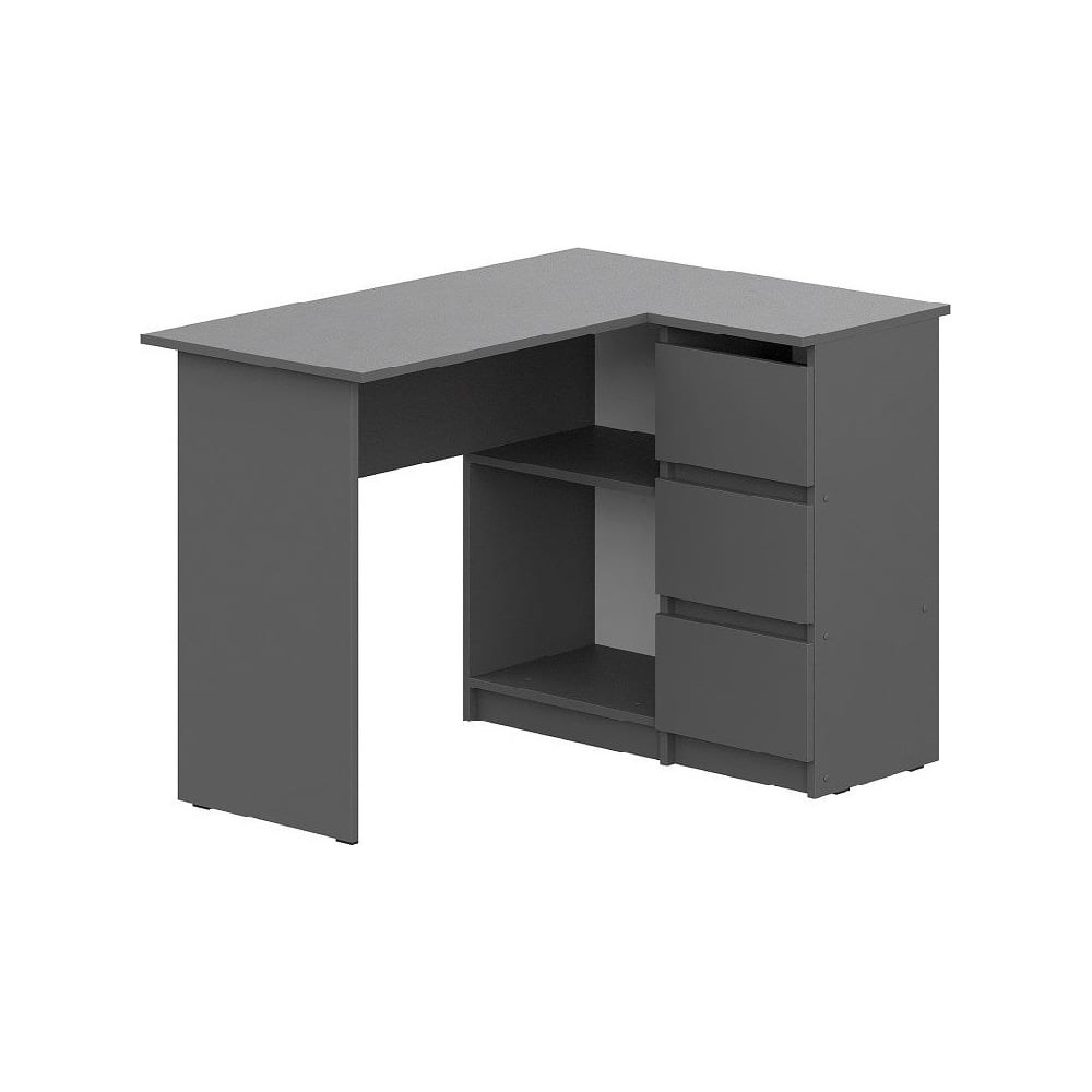 Угловой стол Денвер в цвете графит - это прекрасный выбор для тех, кто ценит комфорт и функциональность в современном интерьере. Он идеально подойдет для организации рабочего места. Угловая форма стола позволяет максимально эффективно использовать пространство, а три выдвижных ящика обеспечат удобное хранение документов и других необходимых вещей.Корпус ЛДСП 16 мм графит серыйФасад ЛДСП графит серыйНаправляющие роликовыеСкрытая фурнитураНагрузка на столешницу 20 кгНагрузка на полки 5 кг