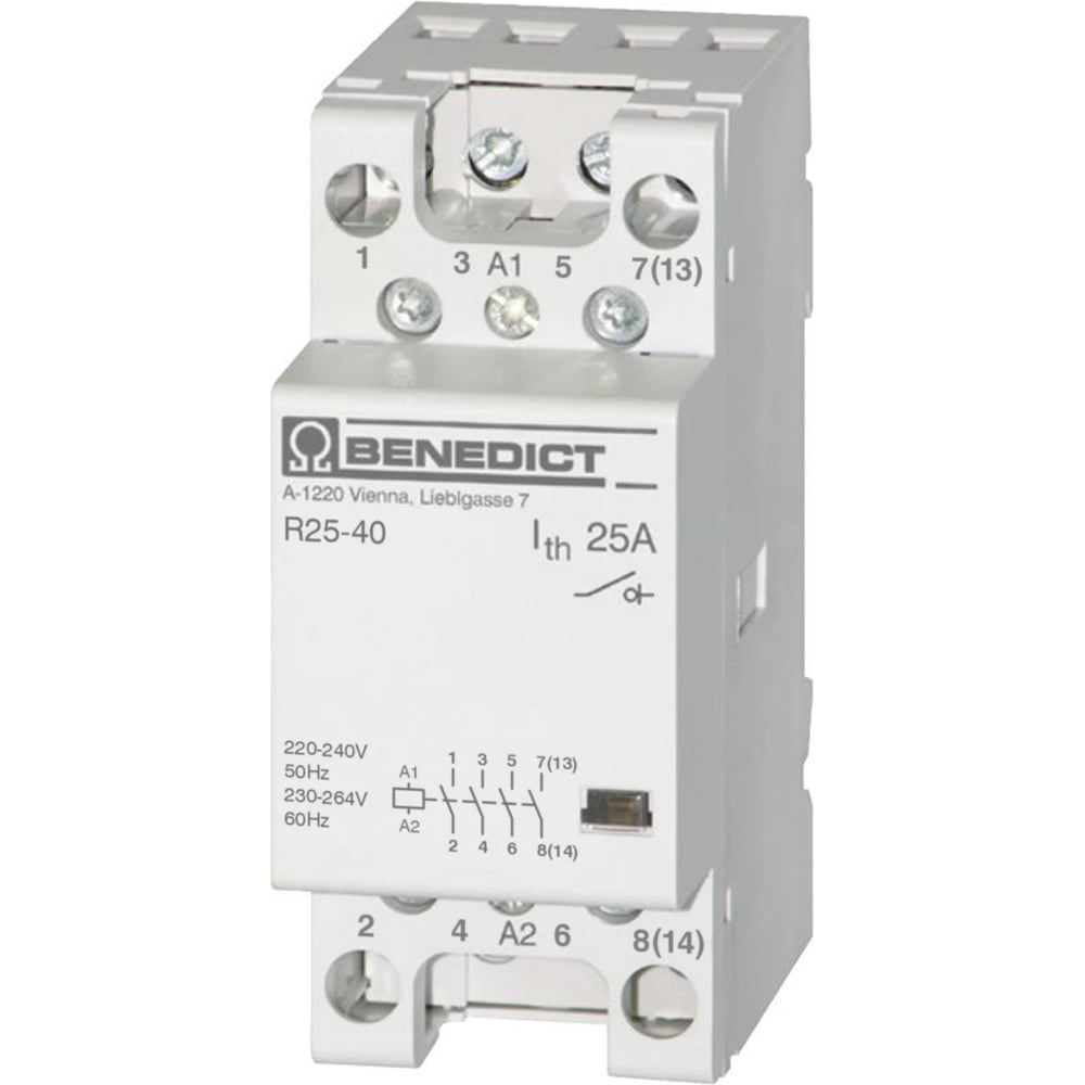 Модульный контактор Benedict R25-40 230 PN38950 предназначен для коммутации электрических цепей переменного тока. Может применяться в схемах управления осветительным, электронагревательным оборудованием, насосами и другими электрическими приборами.