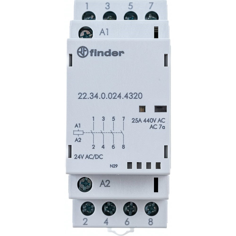 Дополнительные характеристики модульного контактора Finder 4 NO, Механический индикатор + Светодиод Контакты AgSnO2, 223400244320: Зазор контактов ≥ 3 мм, двойное размыкание. Постоянная готовность катушки и контактов. Бесшумная катушка АC/DC (с защитой варистором). Защитный интервал (усиленная изоляция) между катушкой и контактами. Механическая и светодиодная индикация в стандартной версии. Контакты AgSnO2 предназначены для коммутации ламп и высоких пиковых токовых нагрузок. Фото товара является условным, актуальные данные указаны в технических характеристиках.