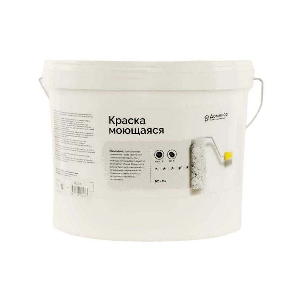 Доминар Краска моющаяся акриловая БС 113, 14 кг, I54194 для создания интерьеров для внутренних работ. Краска моющаяся, интерьерная, супербелая, не содержит вредных растворителей и не имеет резкого запаха. краска моющаяся для стен прекрасно подходит для высококачественной окраски стен и потолков в помещениях с нормальной влажностью: краска для кухни, для спальни, гостиной, офиса, зала, коридора. Как и эмаль краска водно дисперсионная и меловая краска, универсальная для любых пористых поверхностей: краска для кирпича, краска по бетону, двп, дсп, штукатурке, краска для обоев цветная под колеровку, по камню, краска декоративная для стен, по газобетону, бетону, краска по дереву, штукатурке. Для покраски стен и потолка можно использовать валик малярный, маляная кисть. Краска акриловая матовая придает благородный оттенок поверхностям, в отличии от яркой краски глянцевой. Краска колеровочная Доминар легко колеруется в любой оттенок. Краска акриловая легко наносится, не трескается после высыхания. Основными отличительными свойствами являются: -после нанесения образует белую матовую поверхность, которая пропускает пар, что упрощает эксплуатацию. -при нанесении ложится хорошо и плотно на подготовленную поверхность. -имеет хорошую адгезию к деревянным, бетонным, кирпичным, гипсокартонным и оштукатуренным поверхностям. -краска пожаробезопасна.