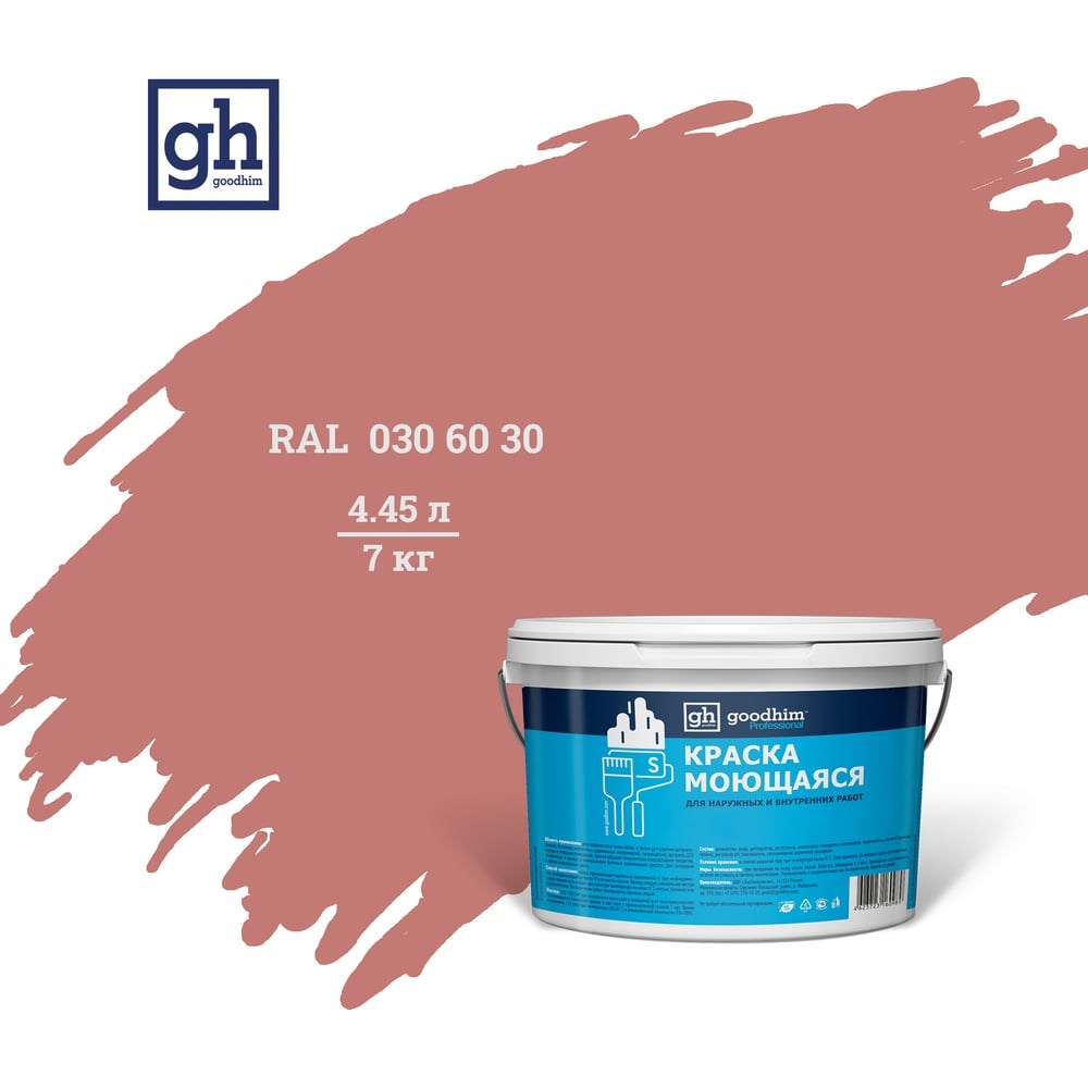 Колерованная краска Goodhim S D2 RAL 030 60 30, моющаяся, водно-дисперсионная, акриловая, 7 кг 51900 предназначена для окраски всех типов обоев, а также для отделки оштукатуренных, бетонных, кирпичных, деревянных поверхностей, гипсокартона, оргалита, ДСП внутри и снаружи помещений. Продукт образует полуматовое износостойкое покрытие, устойчивое к мытью с применением бытовых моющих средств.