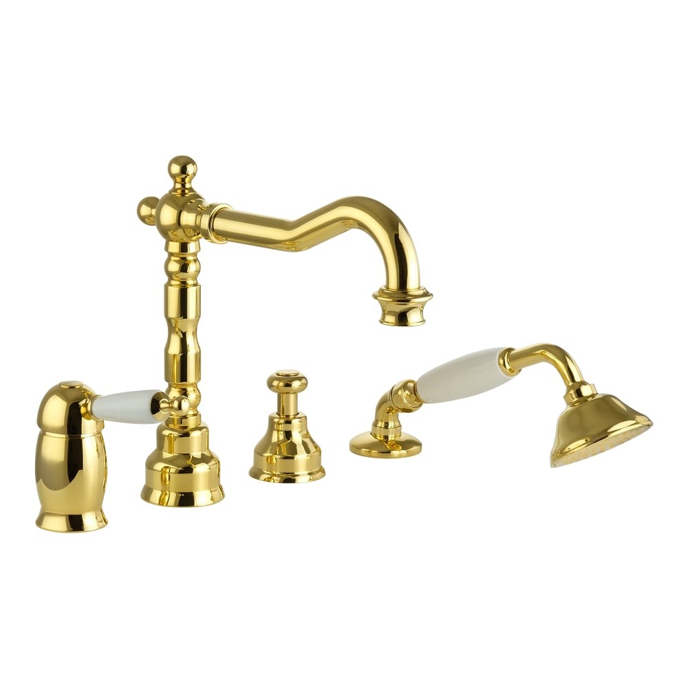 Смеситель на борт ванны Migliore OXFORD на 4 отверстия, ручка белая, золото 19165