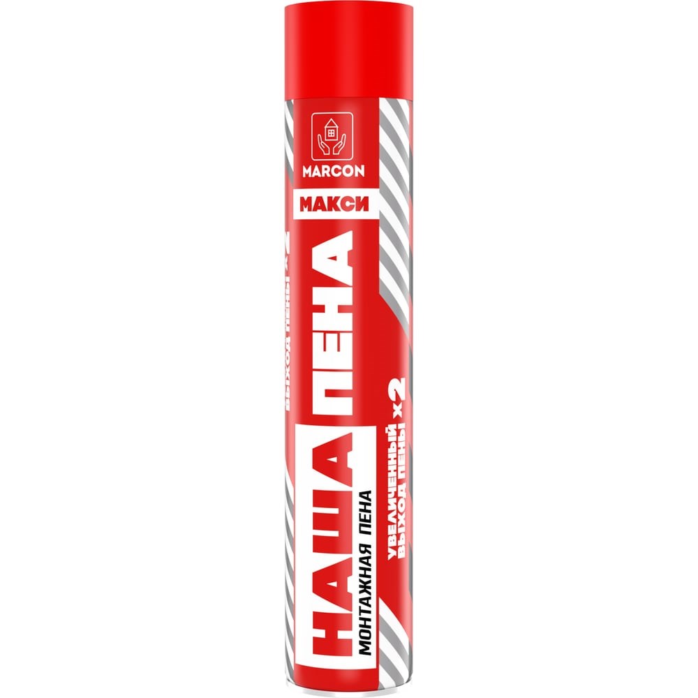 Монтажная бытовая пена MARCON Наша пена maxi 4620010540967 – бытовая пена высокой плотности, позволяющая проводить широкий спектр домашних и бытовых работ по заполнению, пустот, щелей, швов, монтажу оконных и дверных блоков, герметизации, тепло- и шумоизоляции различных помещений, конструкций без использования специальных монтажных пистолетов.