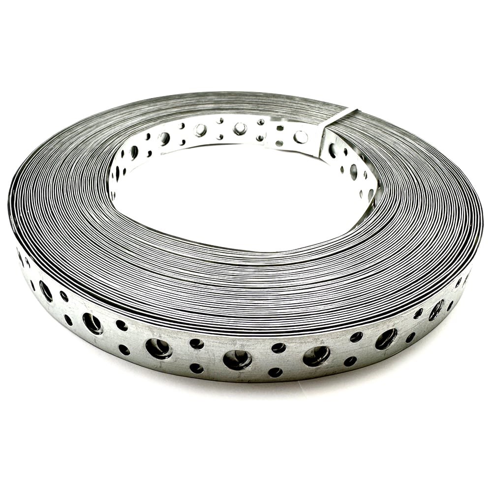 Монтажная перфорированная лента применяется при выполнении широкого спектра монтажных работ, сантехнических, электротехнических, при прокладке систем кондиционирования и вентиляции воздуха. Используется для крепления и фиксации труб и кабелей к строительному основанию, для создания легких подвесных конструкций. Лента монтажная перфорированная прямая для прямого монтажа ЛМП представляет собой стальную полосу с прямой кромкой оснащенную сквозными технологическими отверстиями. Крепежное изделие универсального назначения производится в рулонах длиной 25 м с возможностью нарезки сегментов нужной длины. Перфорация ленты нанесена в три ряда с равным шагом, по центру расположены отверстия большого диаметра по краям малого. Монтажная лента изготовлена из оцинкованного стального листа, что гарантирует прочность и стойкость к атмосферным факторам окружающей среды. Большое количество отверстий позволит быстро закрепить ленту с помощью гвоздей или саморезов в нужном месте. Также данная лента крепится к бетонным, кирпичным и металлическим основаниям с помощью пристрелки пневматическим гвоздезабивным пистолетом. Крепление осуществляется за счет забивания гвоздя в материал. Предельная простота операции. Такой способ в отличии от анкерного крепления не требует сверления стен, не нуждается в дюбелях и винтах ― требуются только монтажный пистолет и гвозди. Перед использованием ленты выставите на гвоздезабивном пистолете минимальную степень заглубления гвоздя Срок службы: не менее 20 лет.