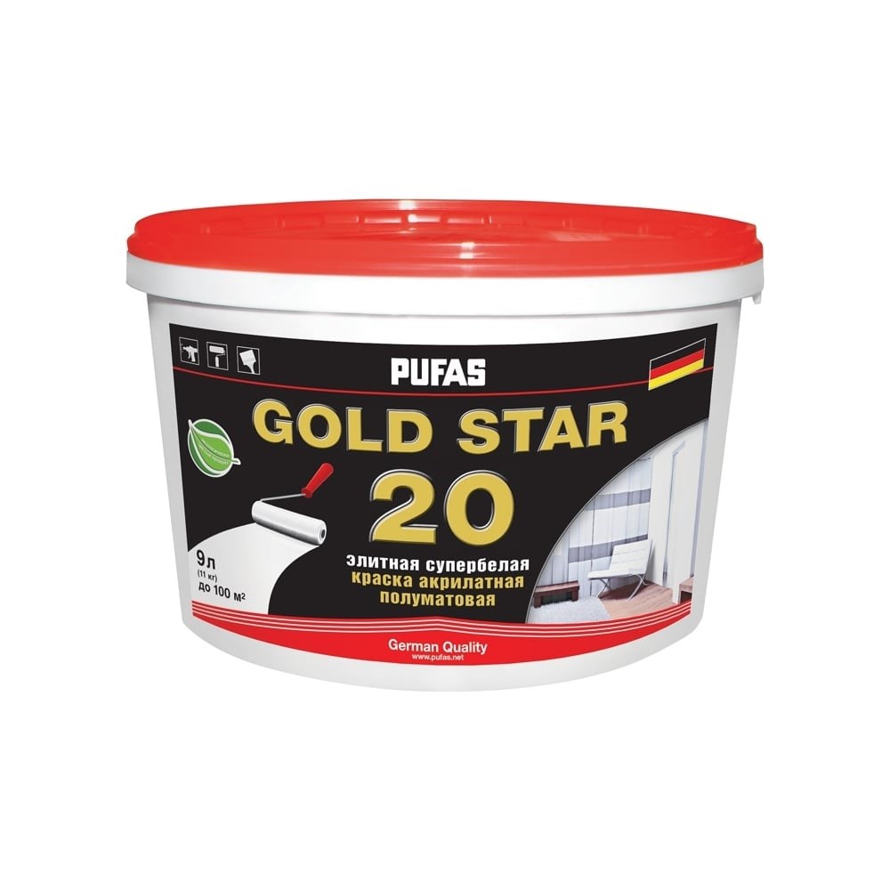 Акрилатная краска Pufas GOLD STAR 20 полумат. Основа D мороз. 9л10,4кг тов-188875