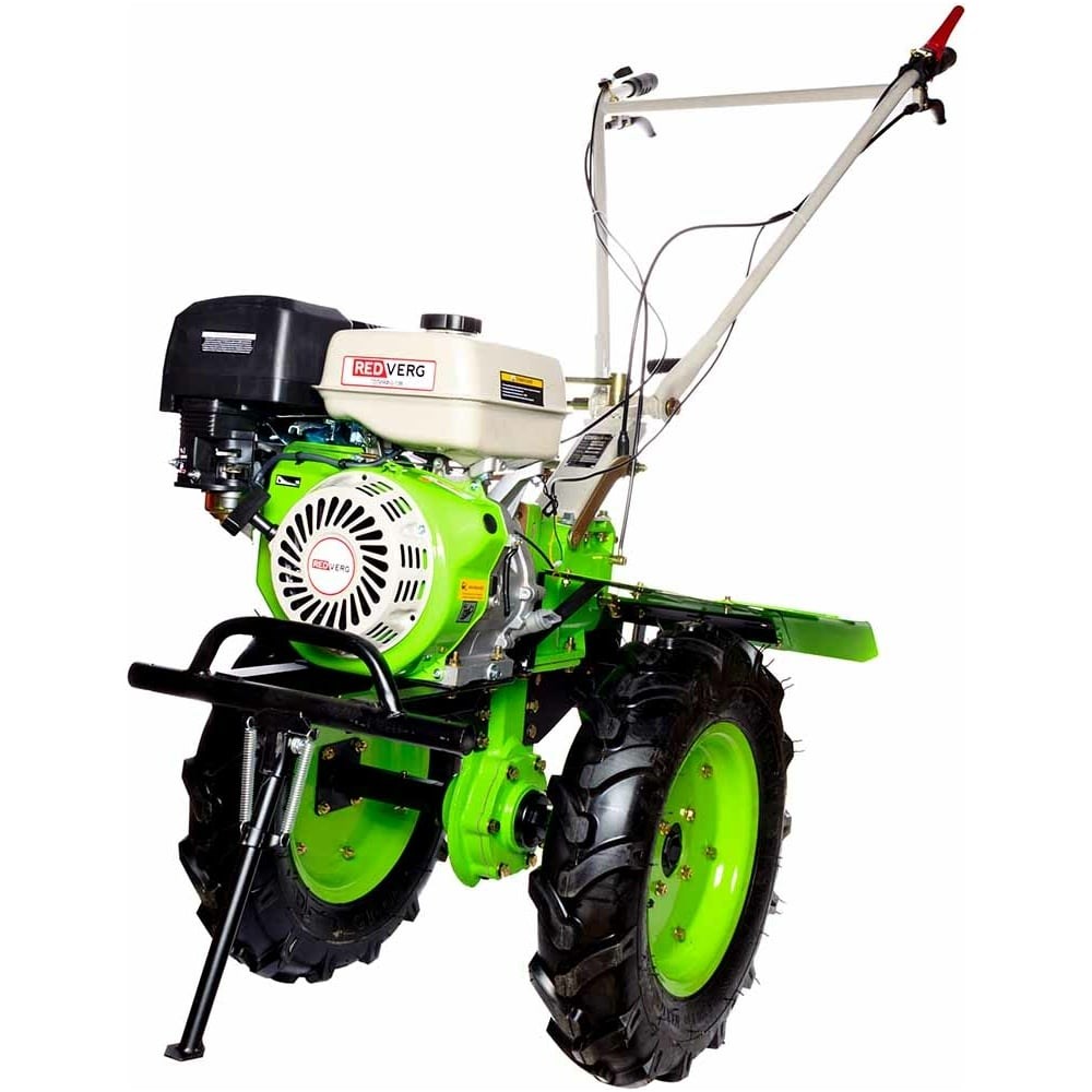 Мотоблок REDVERG Голиаф-3-13Б 6671374 предназначен для выполнения различных работ по обработке почвы и использования в качестве транспортного средства для перевозки грузов. Увеличенная колёсная база обеспечивает устойчивое положение и препятствует опрокидыванию мотоблока в процессе работы. Оборудован мощным 4-х тактным двигателем и сошником для регулировки глубины культивации от 10 до 30 см. Мощный шестерёнчатый редуктор в чугунном корпусе способен выдержать серьезные нагрузки при работе с тяжёлыми почвами.