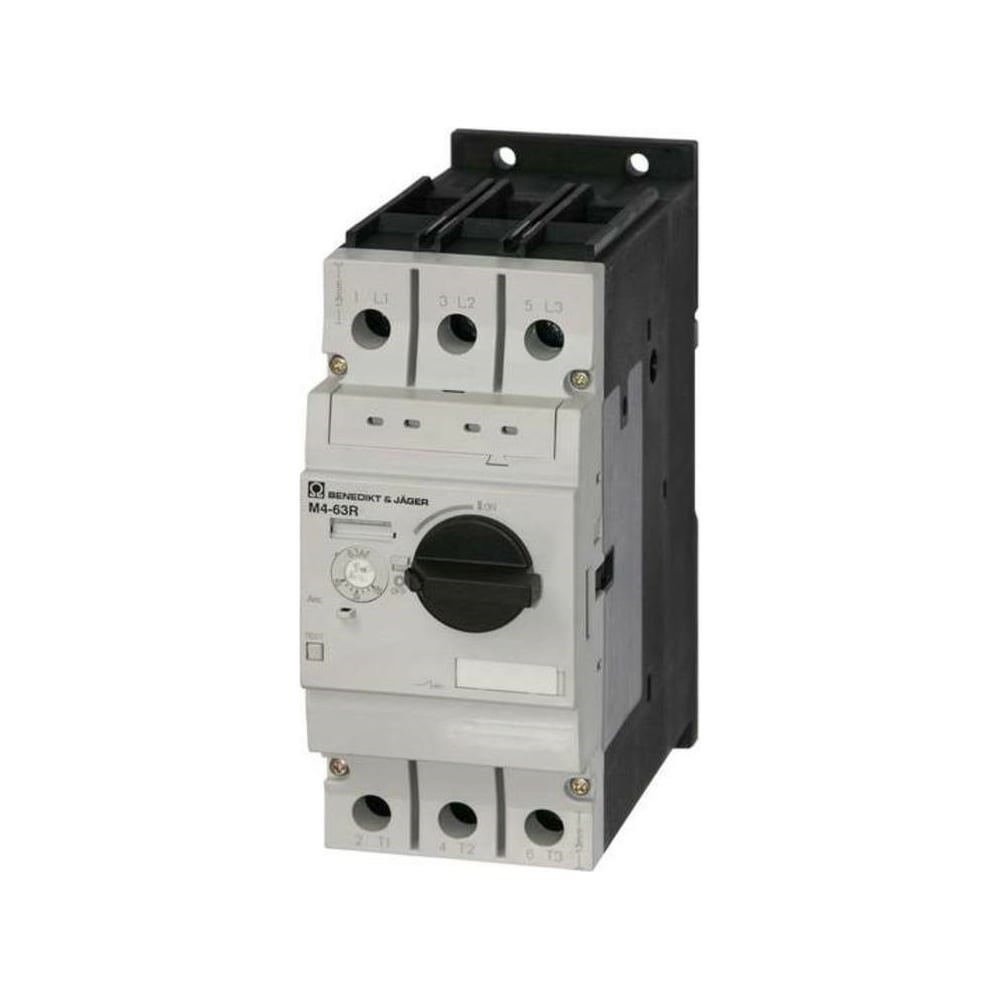 Мотор-автомат Benedict M4-63R-40 PN73076 предназначен, в первую очередь, для пуска, остановки и защиты однофазных и трехфазных асинхронных двигателей. Номинальный ток 40А.