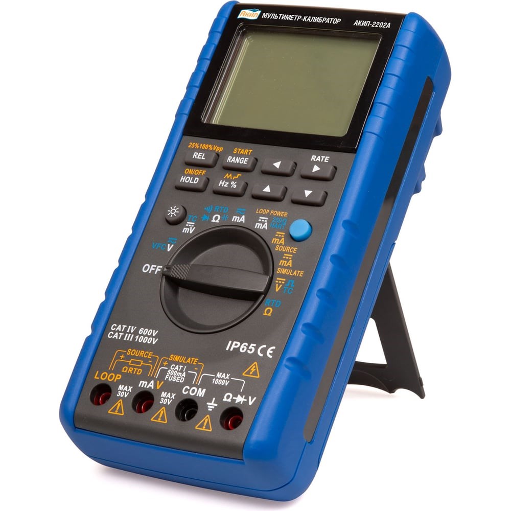 Мультиметр-калибратор АКИП-2202А объединяет в себе два наиболее часто используемых любым техническим специалистом прибора – это комбинация цифрового мультиметра и универсального калибратора петли тока в одном портативном корпусе. В отличие от предыдущих модификаций серии базовая погрешность ±0,05%, мультиметр оснащен функцией измерения VCF, добавлена поддержка термосопротивления PT1000, модель получила доп. предел воспроизведения сопротивления до 4 кОм (ранее 400 Ом), а также увеличенное разрешение индикации ЖКИ (55.000). Применение АКИП-2202А исключает необходимость иметь под рукой при диагностике и эксплуатационном контроле набор других тестеров и специализированных приборов для отладки. Калибратор АКИП-2202А поддерживает функцию калибровки петли/LOOP при использовании внешнего источника постоянного тока 12-48 В. Встроенный резистор 250 Ом позволяет осуществлять калибровку HART-устройств (использовать как калибратор токовой петли). Данный режим востребован при проведении испытаний датчиков и передающих устройств, а также других преобразователей из номенклатуры вторичной аппаратуры. Диагностика датчиков облегчена генерированием сигнала с автоматическим линейно-пилообразным и дискретно нарастающим изменением уровня. Быстрая проверка линейности параметров возможна с помощью встроенной функции нарастания в диапазоне 25%…100% с шагом 25% (по току).