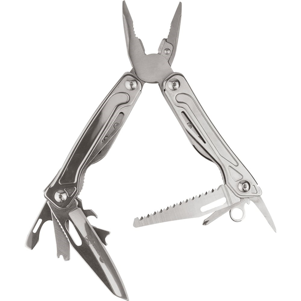 Функцииострогубцы, пассатижи, кусачки, кусачки для твердой проволоки, нож 73 мм, пила по дереву и металлу, отвертка крестовая, шило, отвертка шлицевая большая, открывалка для бутылок, напильник по дереву и металлу