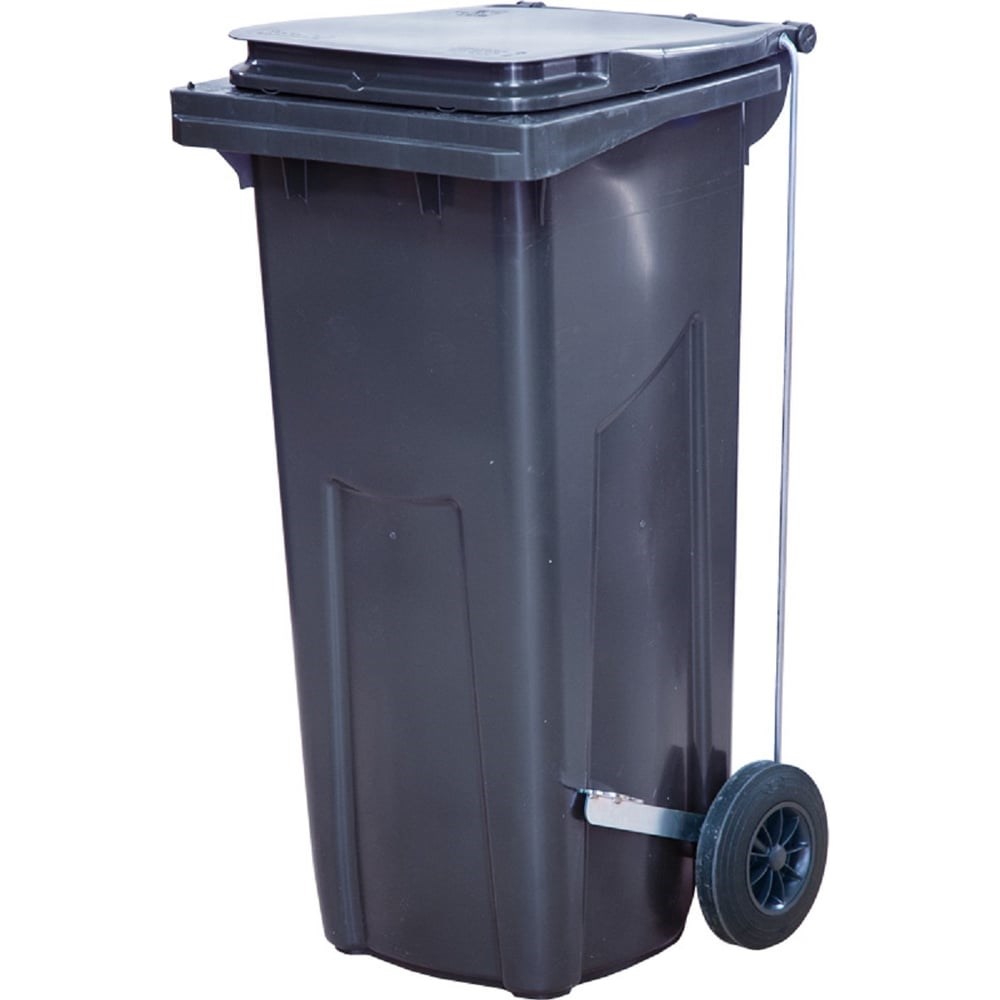 Мусорный контейнер Тара.ру п/э, 120 л, с педальным приводом Г-образным, серый 17917 - контейнер для сбора твердых бытовых отходов, изготовлен из полиэтилена низкого давления, оборудован колесами для удобства перемещения. Бак имеет плотно закрывающуюся крышку, предотвращающую распространение неприятных запахов.